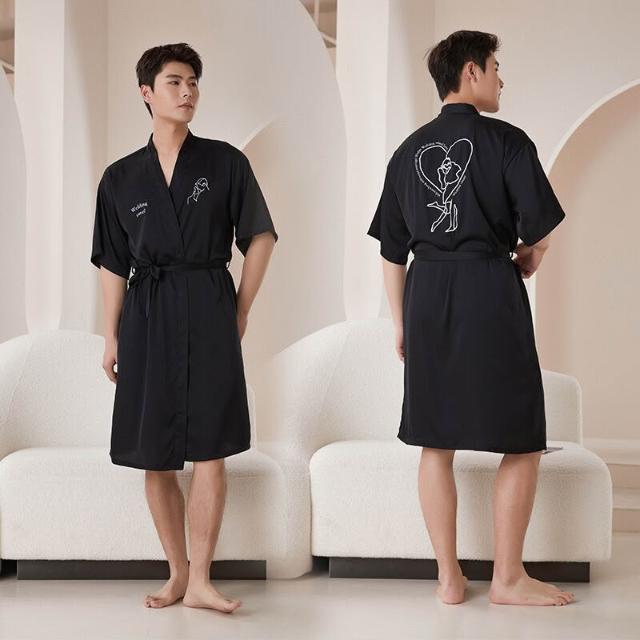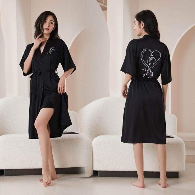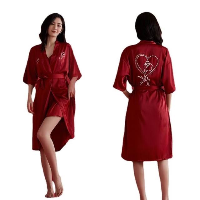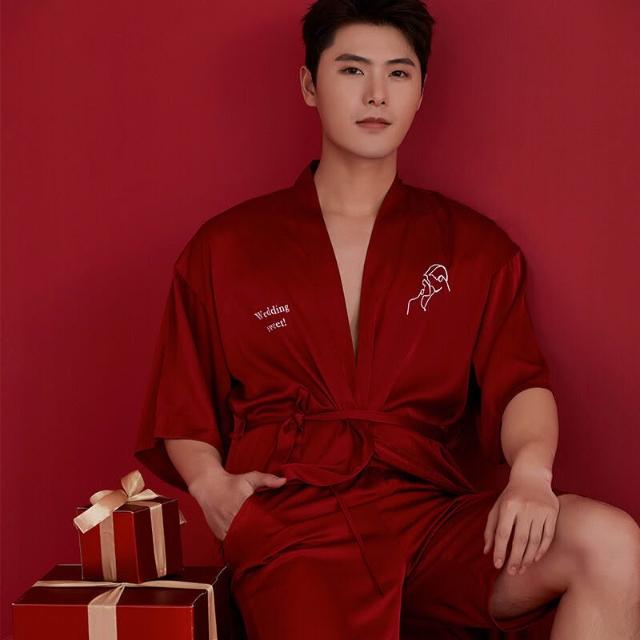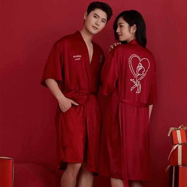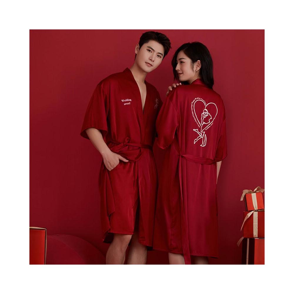 Seven七- 春夏秋款新品簡約休閑簡約薄款情侶家居服睡袍紅色本命年印花套裝