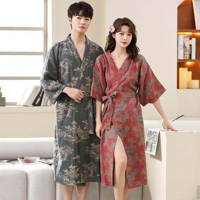 Seven七- 春夏薄款純棉雙層紗布浴袍睡衣家居服情侶款長款