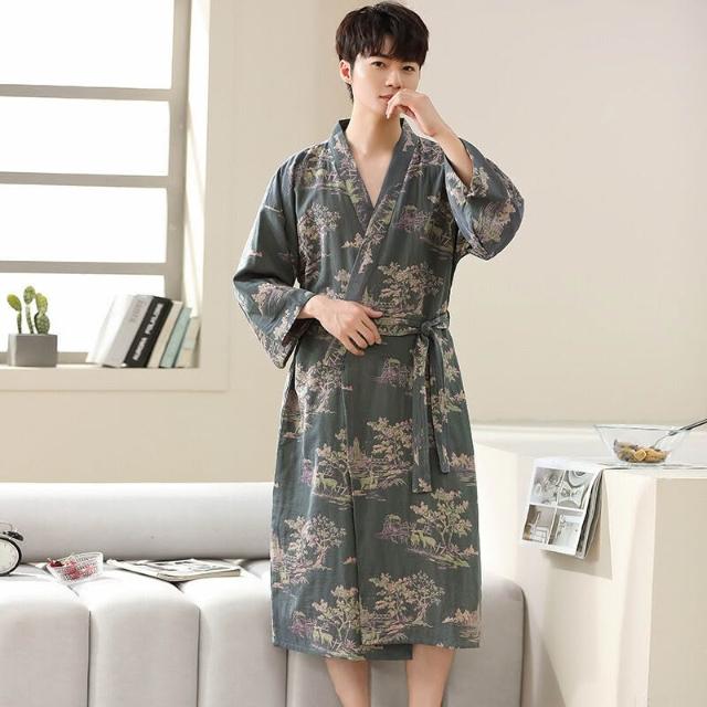 Seven七- 春夏薄款純棉雙層紗布浴袍睡衣家居服情侶款長款