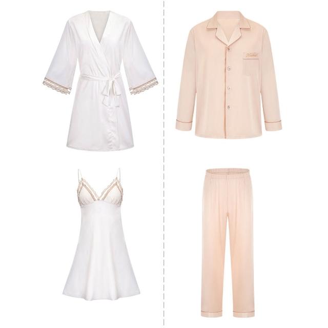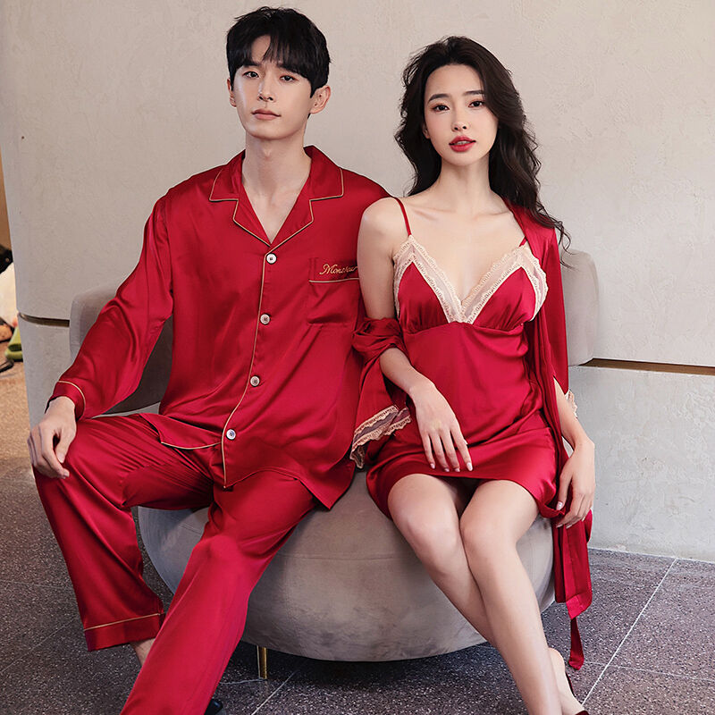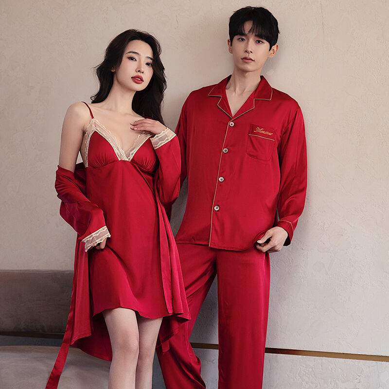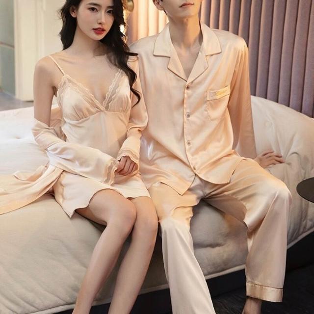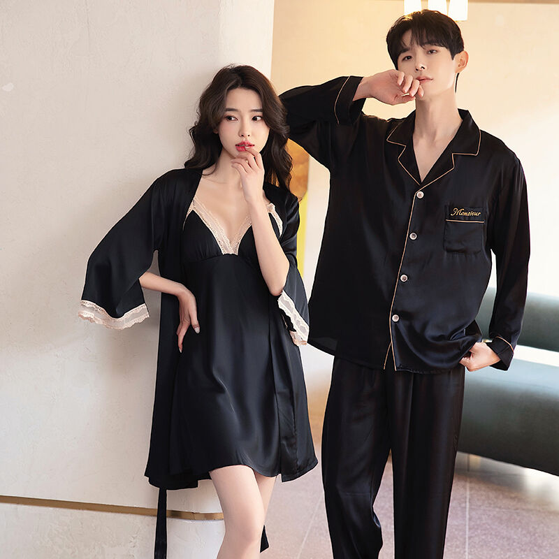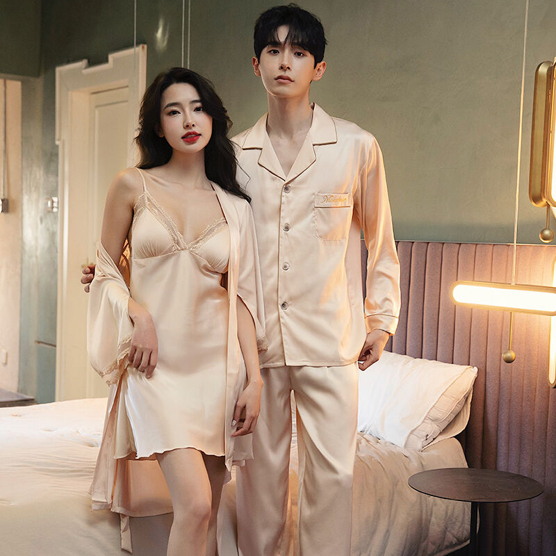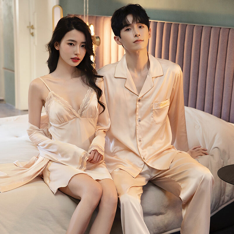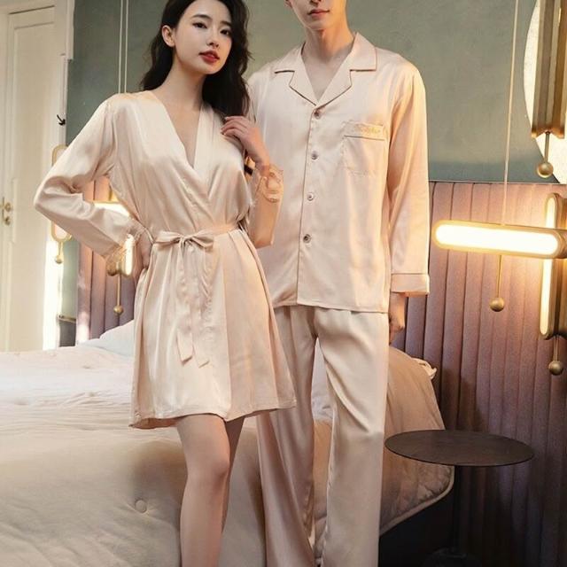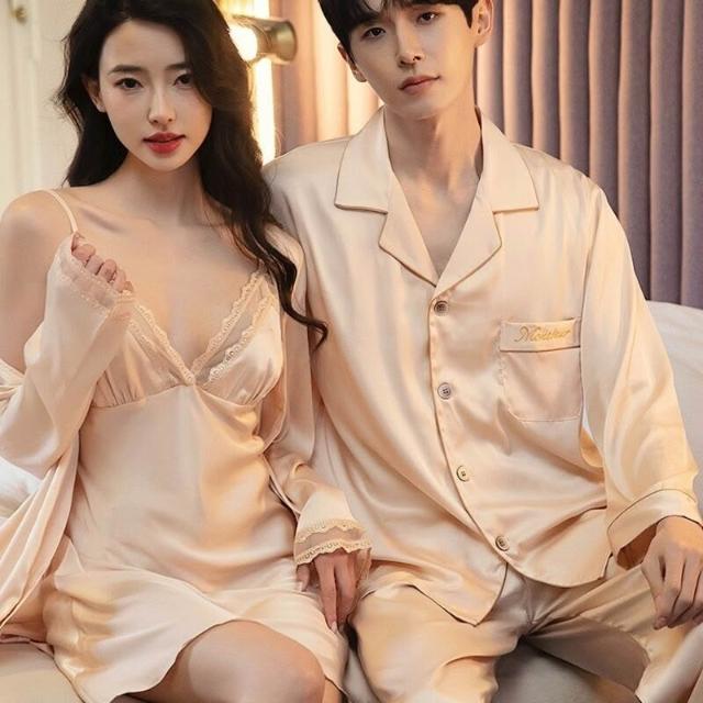 Seven七- 情侶款夏季吊帶睡袍兩件套純欲睡裙女帶胸墊睡衣春秋家居服感