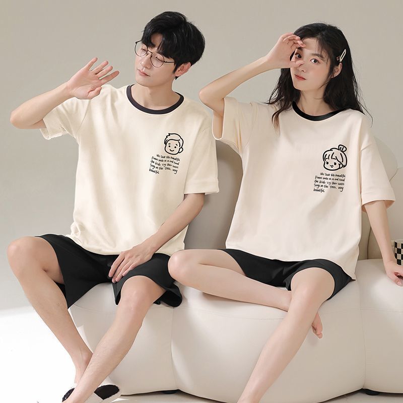 Seven七- 2026新款情侶睡衣夏天女純棉薄款男士短袖短褲卡通網紅家居服套裝