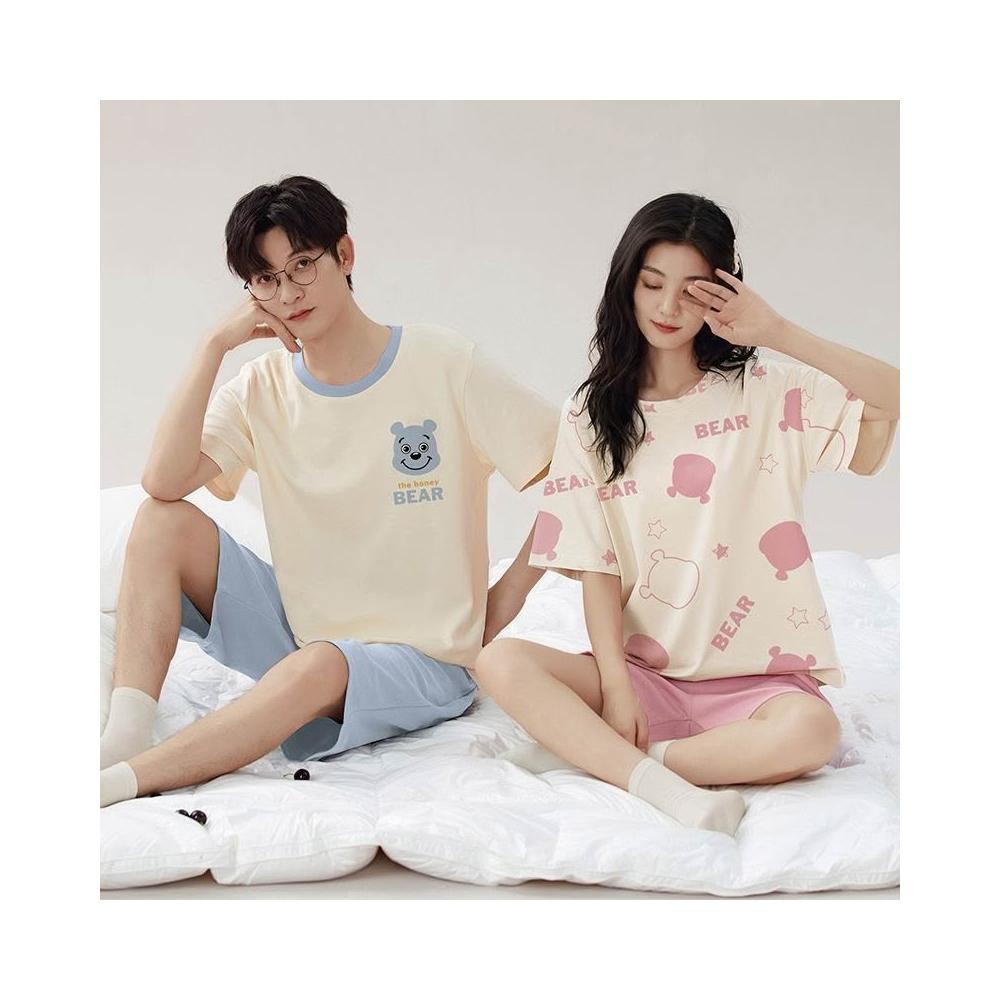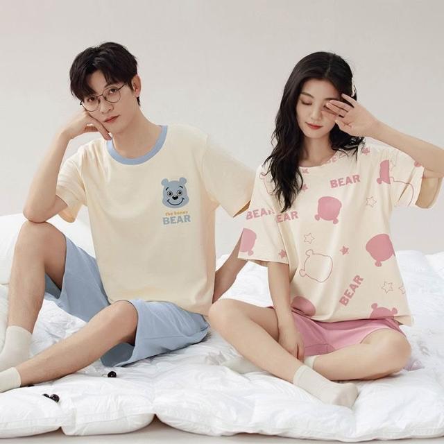 Seven七- 2026新款情侶睡衣夏天女純棉薄款男士短袖短褲卡通網紅家居服套裝