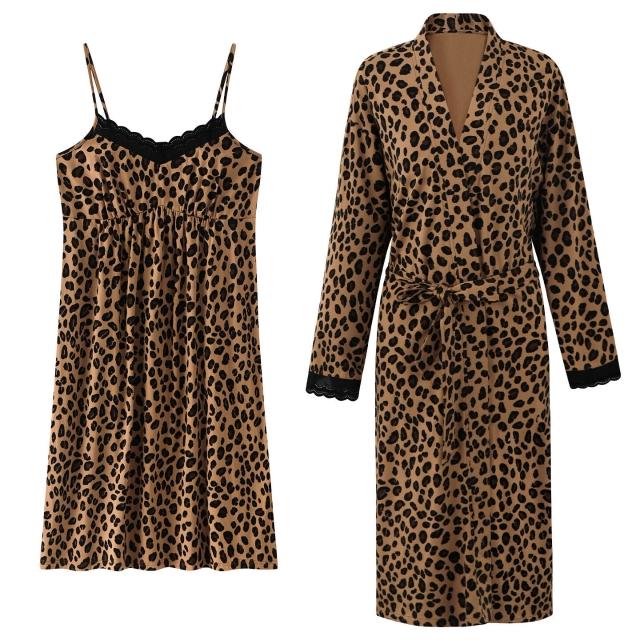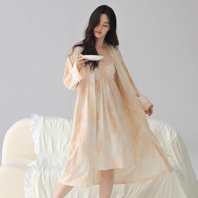 Seven七- 2026秋季新款睡衣莫代爾棉舒適風女士吊帶睡袍兩件套家居服套裝