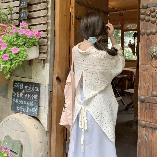 Seven七- 後背開叉系帶防曬襯衫襯衣女春夏薄款冰絲罩衫空調衫外套外搭上衣