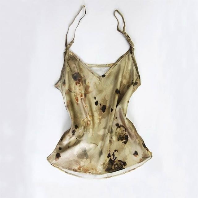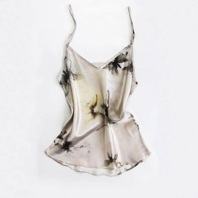 Seven七- 真絲吊帶背心女內搭桑蠶絲美背白花色打底衫絲綢緞面內穿知性