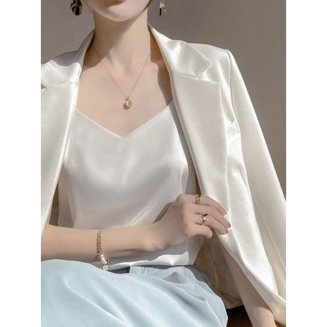 Seven七- 吊帶背心女內搭白色美背醋酸仿真絲上衣緞面夏西裝仿桑蠶絲打底衫