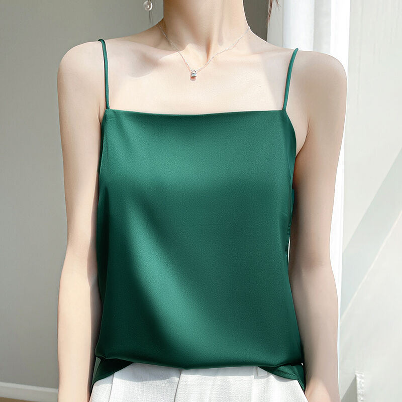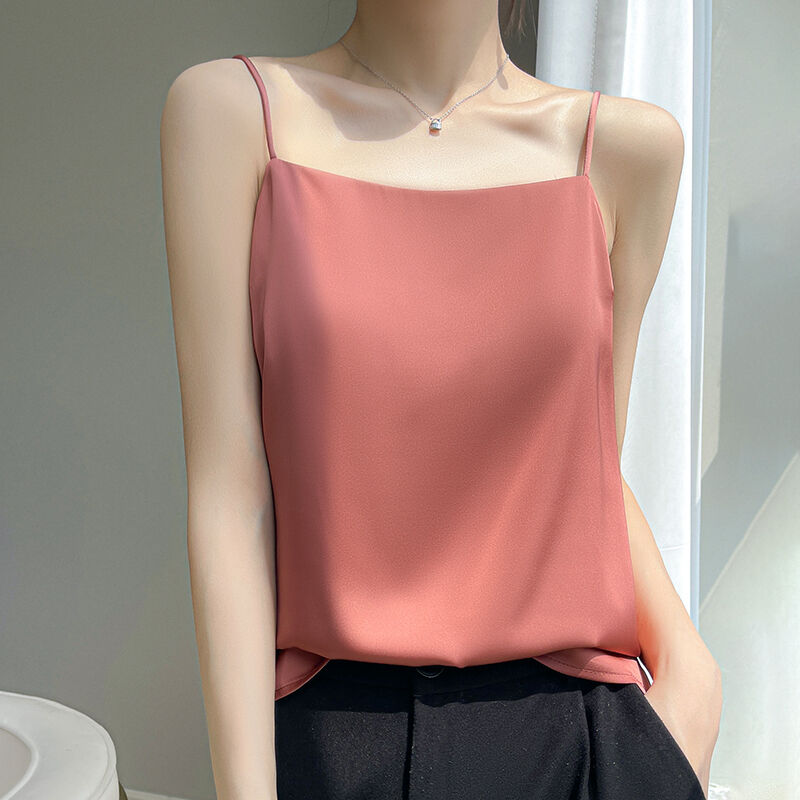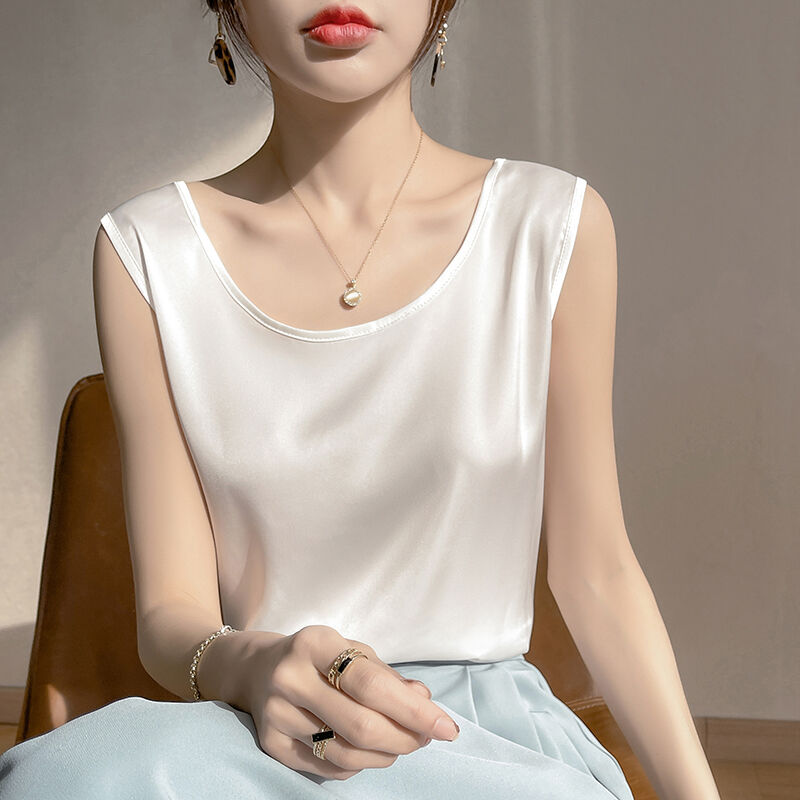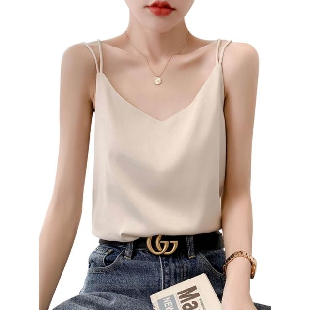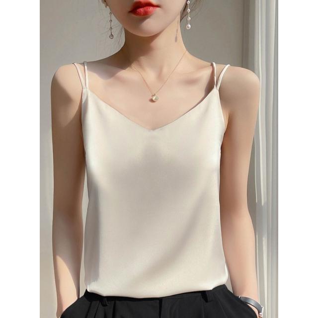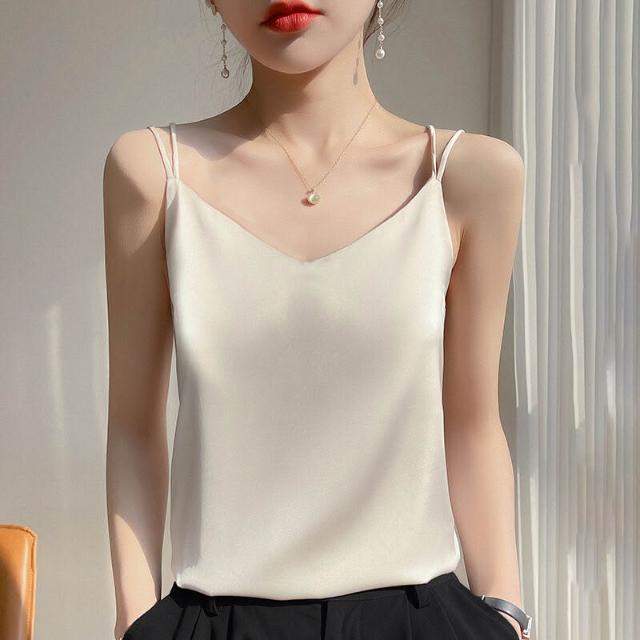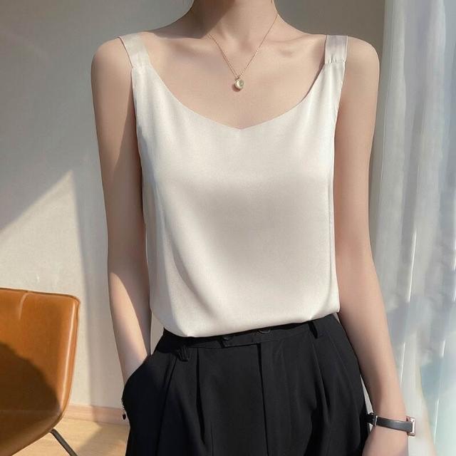 Seven七- 吊帶背心女內搭白色美背醋酸仿真絲上衣緞面夏西裝仿桑蠶絲打底衫