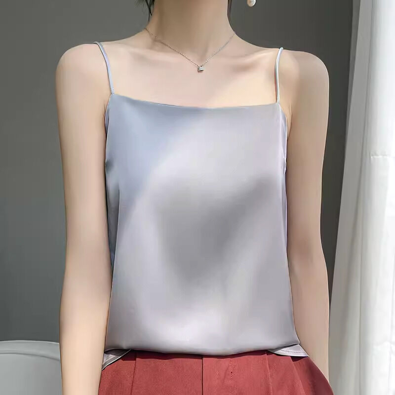 Seven七- 吊帶背心女內搭白色美背醋酸仿真絲上衣緞面夏西裝仿桑蠶絲打底衫