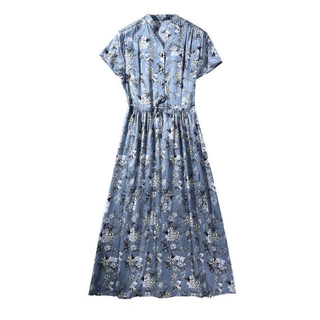 Seven七- 9316真絲連衣裙女2026新款夏季溫柔碎花系帶收腰顯瘦別致輕熟裙子