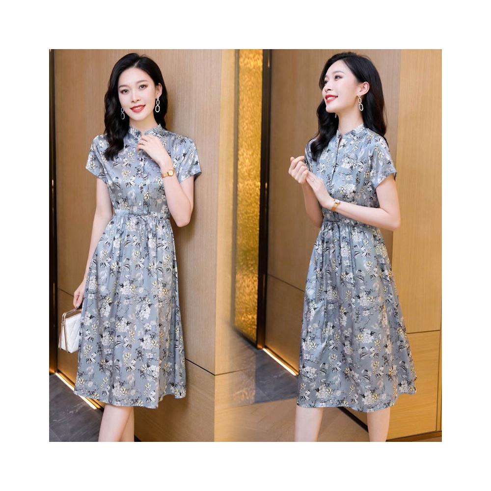 Seven七- 9316真絲連衣裙女2026新款夏季溫柔碎花系帶收腰顯瘦別致輕熟裙子