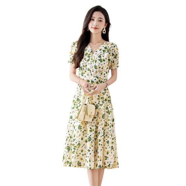 Seven七- 碎花連衣裙女夏新款小個子顯瘦氣質v領a字印花時尚裙子LB9921