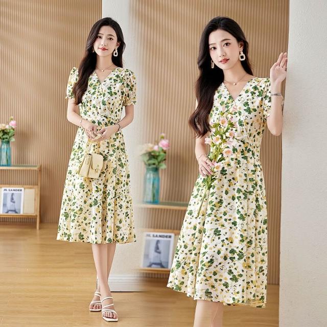 Seven七- 碎花連衣裙女夏新款小個子顯瘦氣質v領a字印花時尚裙子LB9921