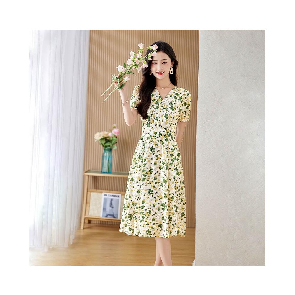Seven七- 碎花連衣裙女夏新款小個子顯瘦氣質v領a字印花時尚裙子LB9921