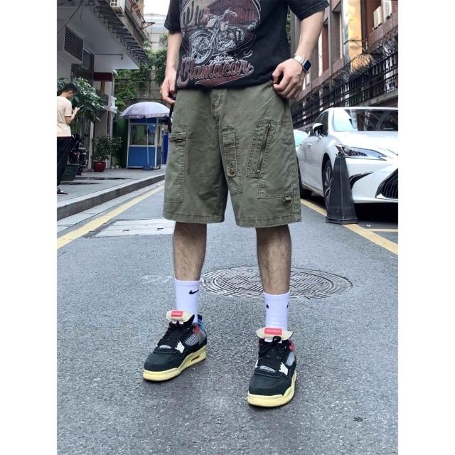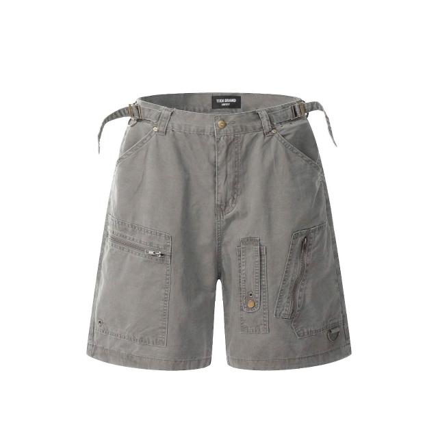 Seven七- 美式復古工裝短褲男女夏季拉鏈寬松廓形水洗做舊五分直筒休閑褲子
