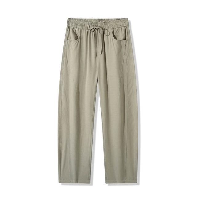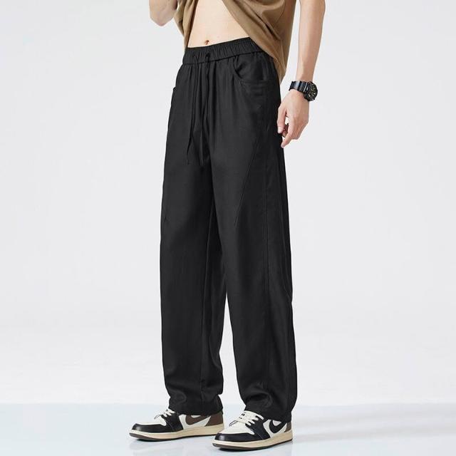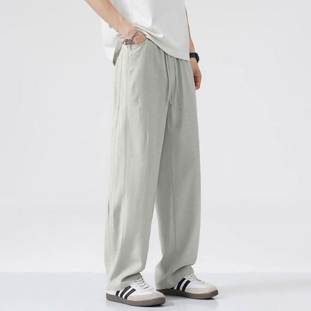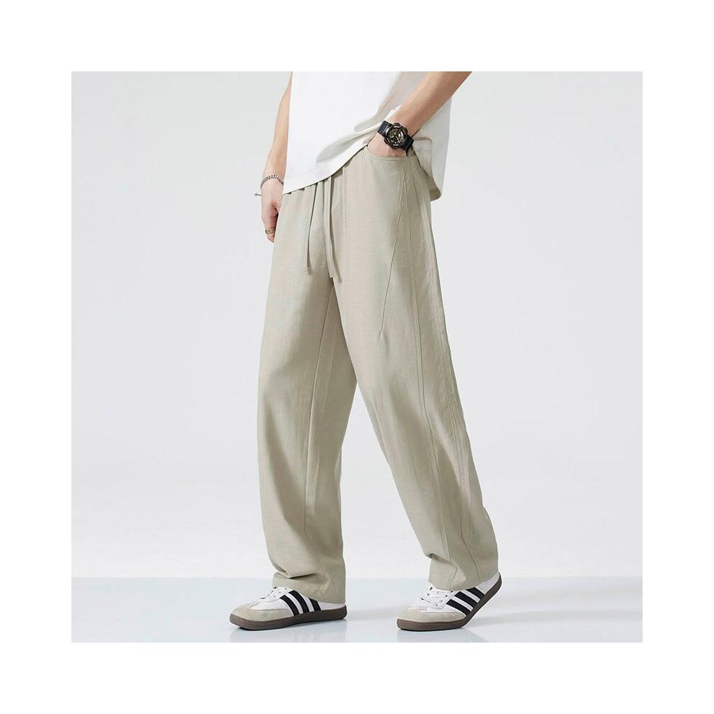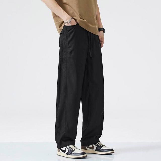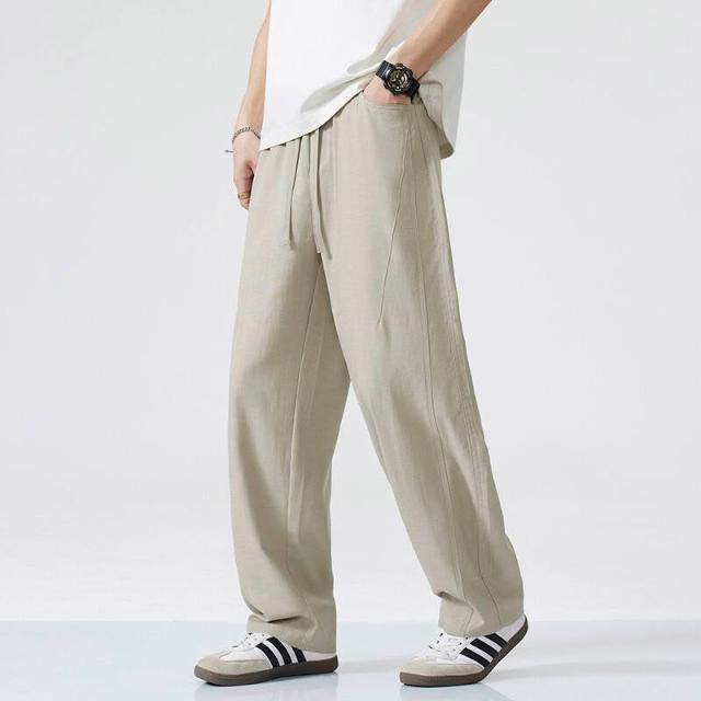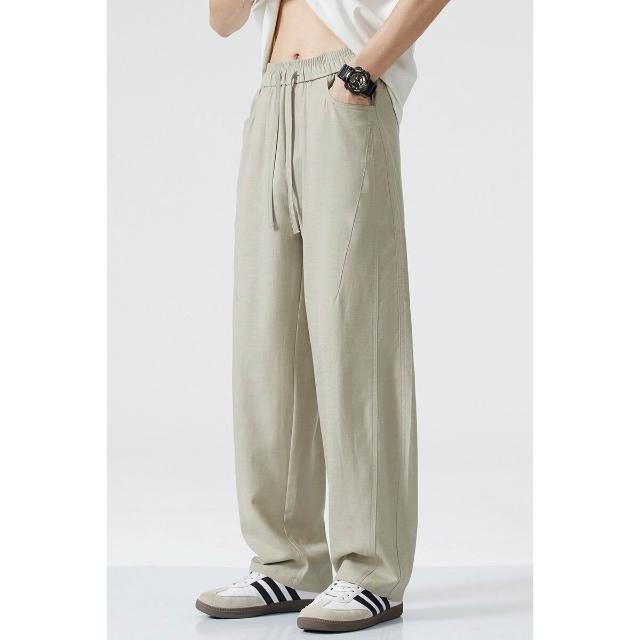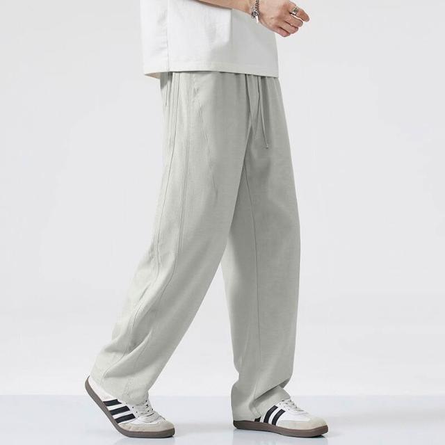 Seven七- 棉麻褲子男寬松直筒大碼闊腿垂感長褲夏季薄款透氣亞麻休閑褲