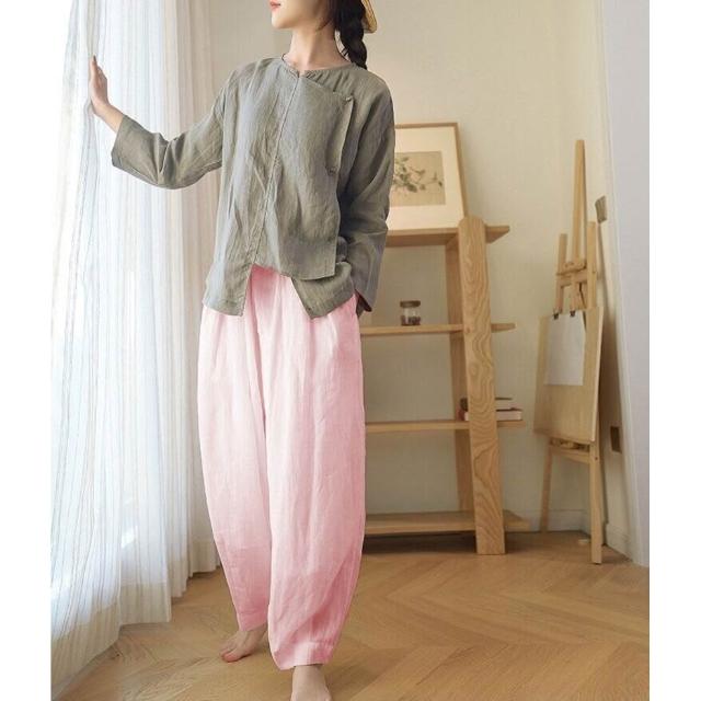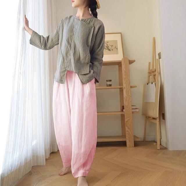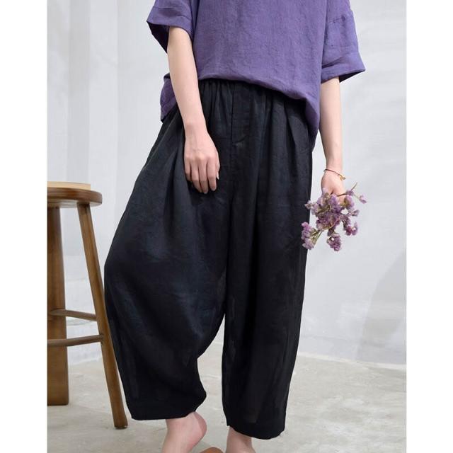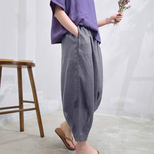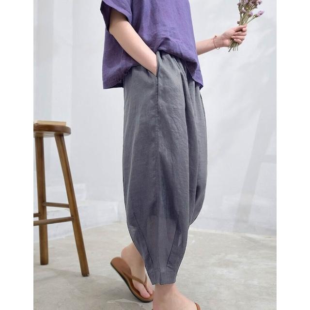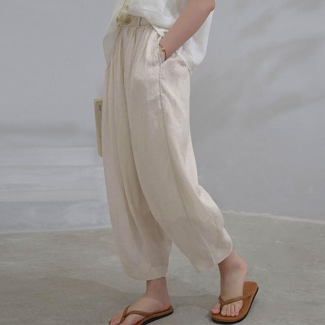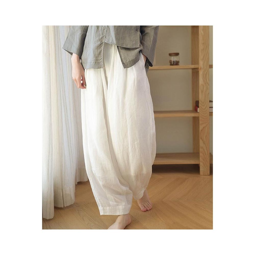 Seven七- 白色苎麻燈籠褲女春夏薄款雙層寬松大碼闊腿褲顯瘦文藝棉麻休閑褲