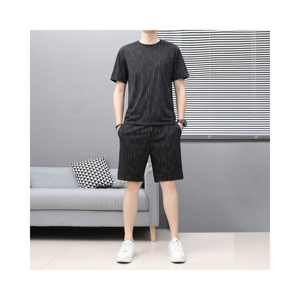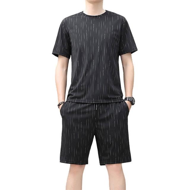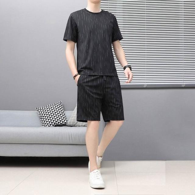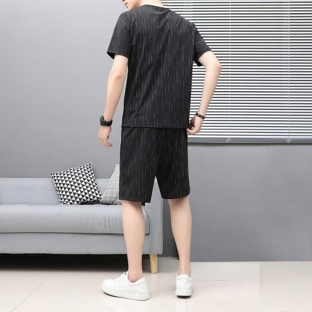 Seven七- 夏季男士圓領短袖T恤韓版潮流冰絲帥氣休閑百搭運動寬松兩件套裝