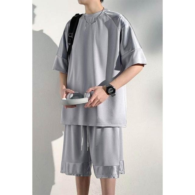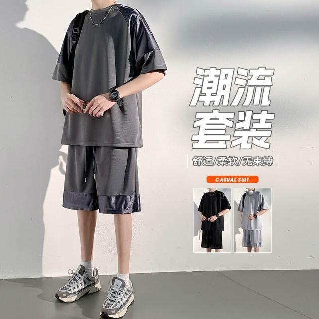 Seven七- 短袖短褲套裝男士夏季.新款沙灘寬松夏裝薄款休閑運動兩件套