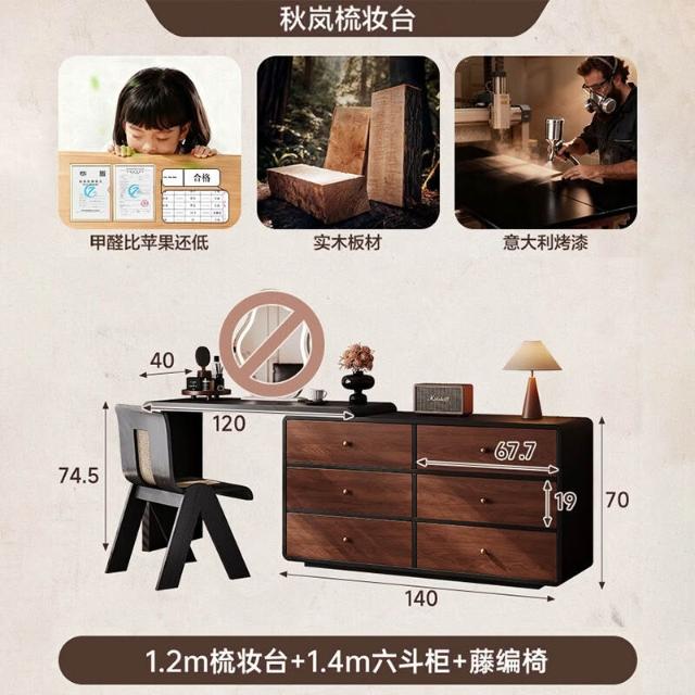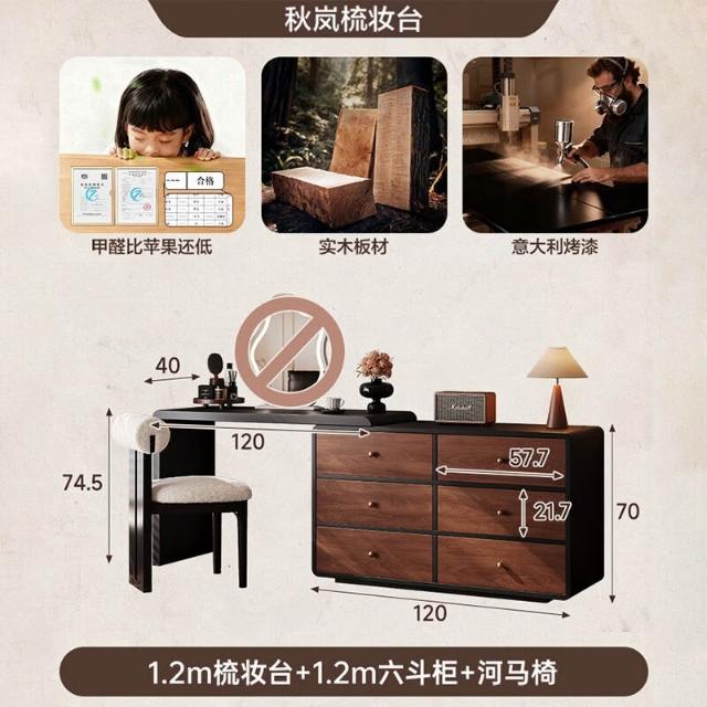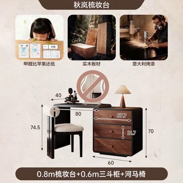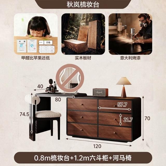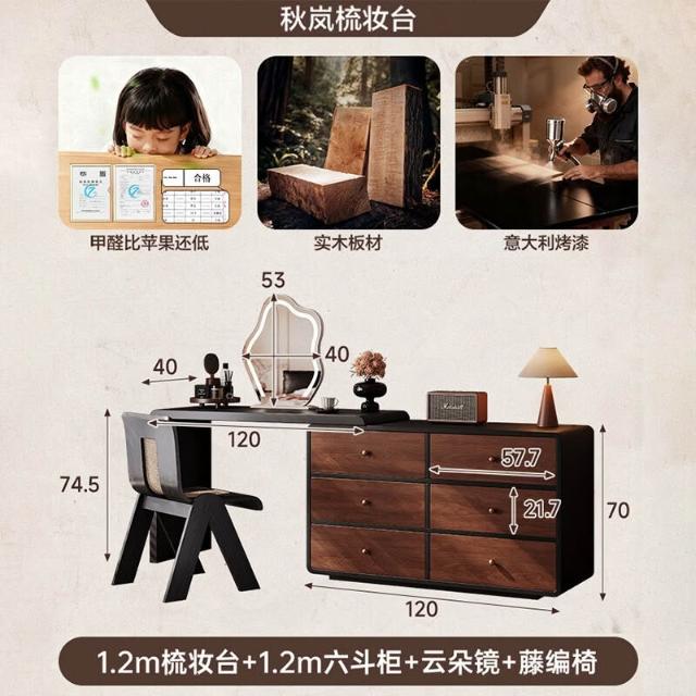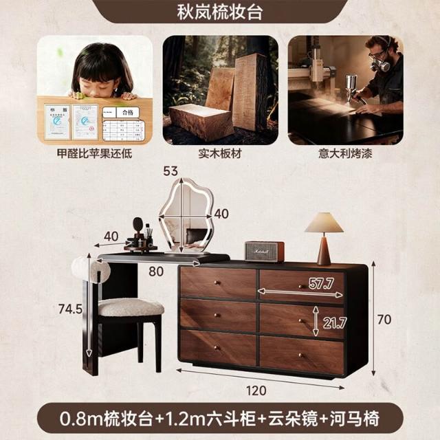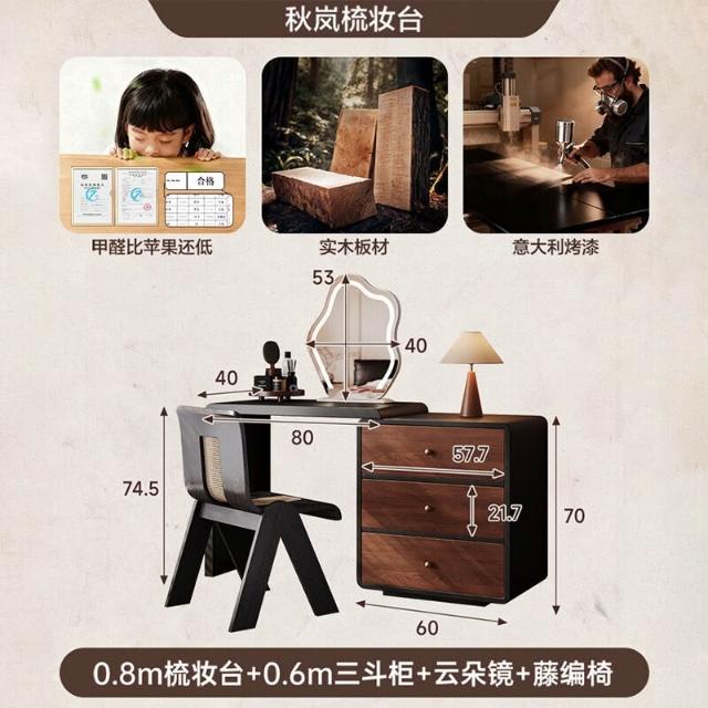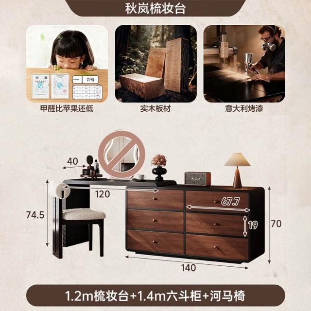 Seven七- 中古風 梳妝臺 鬥櫃一體 臥室 復古實木 化妝桌 小戶型 床尾 櫃收納櫃