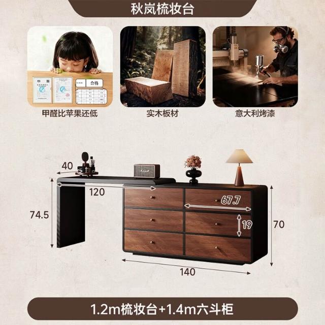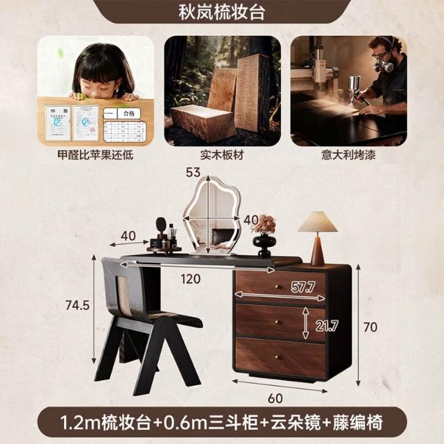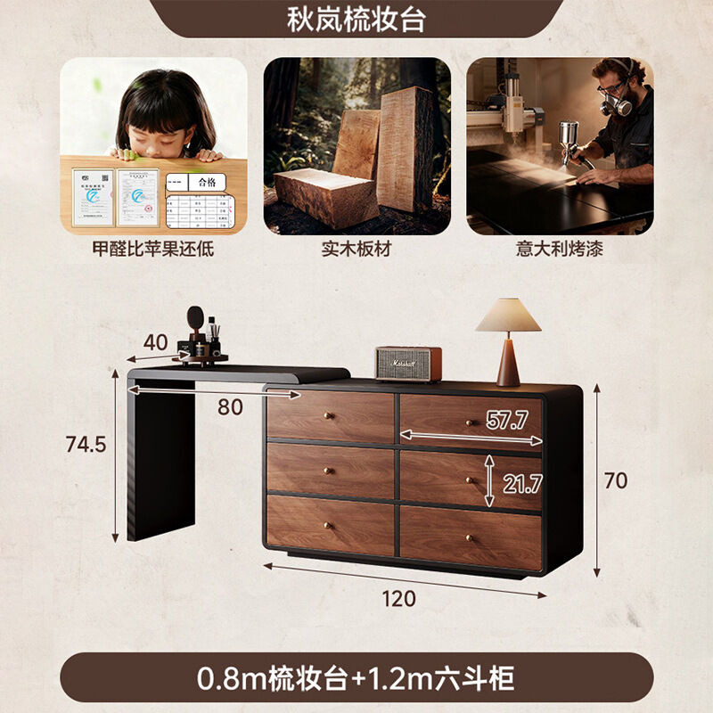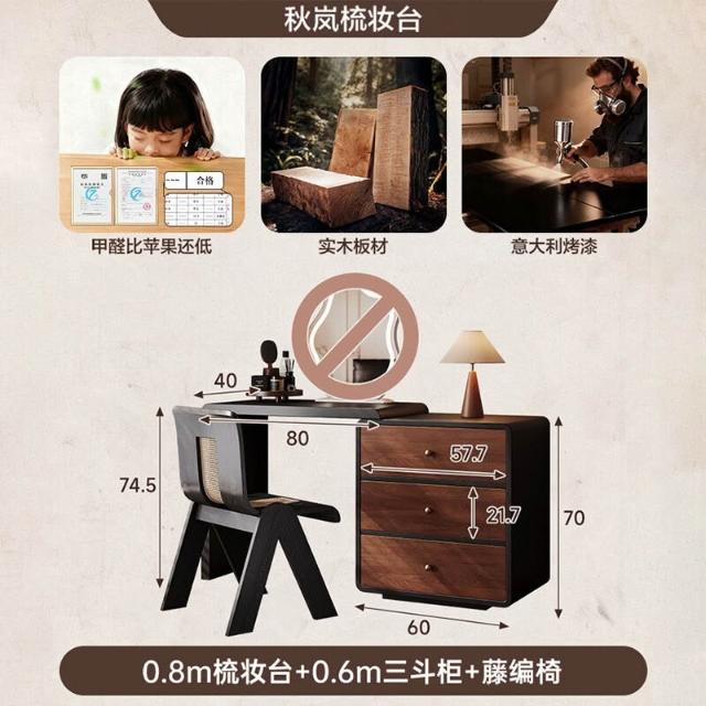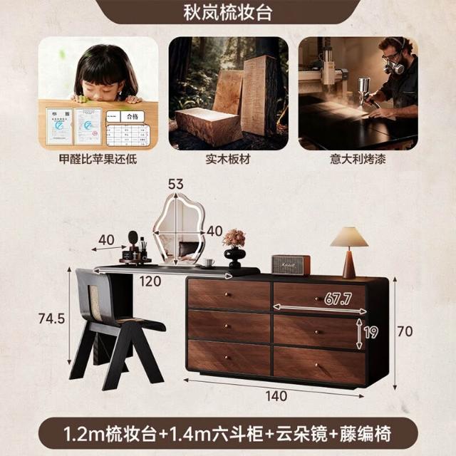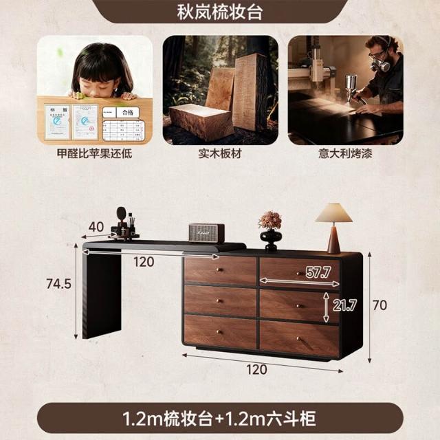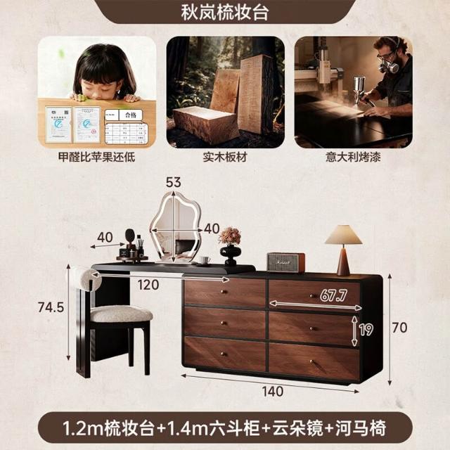 Seven七- 中古風 梳妝臺 鬥櫃一體 臥室 復古實木 化妝桌 小戶型 床尾 櫃收納櫃