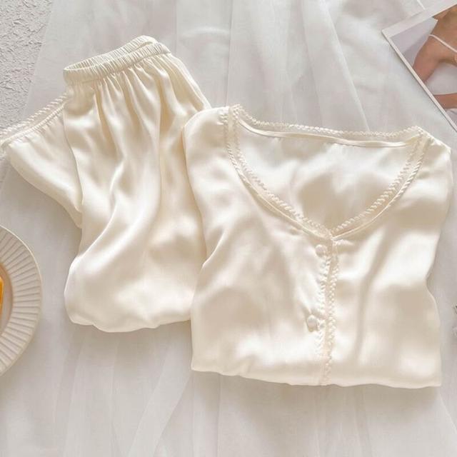Seven七- 真絲睡衣女款春秋季長袖新款家居服白色感冬薄款桑蠶絲綢套裝