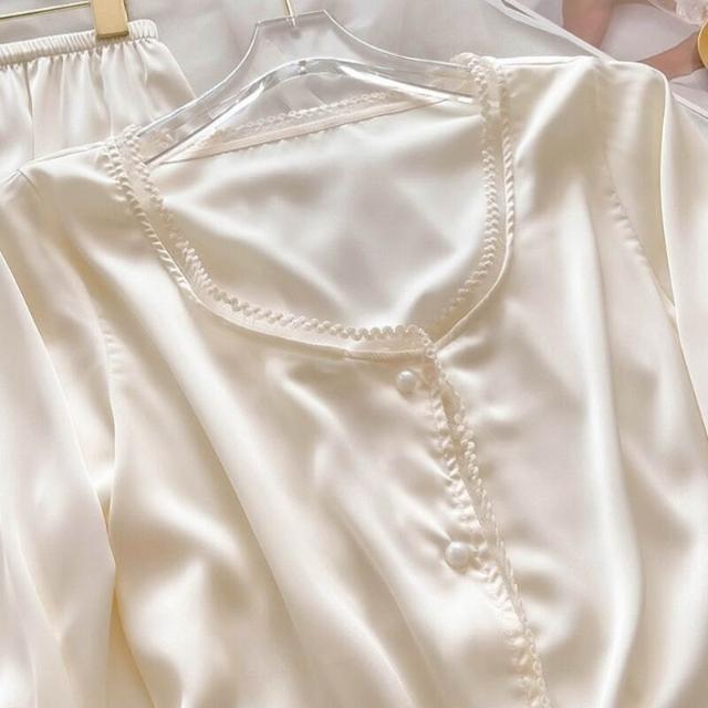 Seven七- 真絲睡衣女款春秋季長袖新款家居服白色感冬薄款桑蠶絲綢套裝