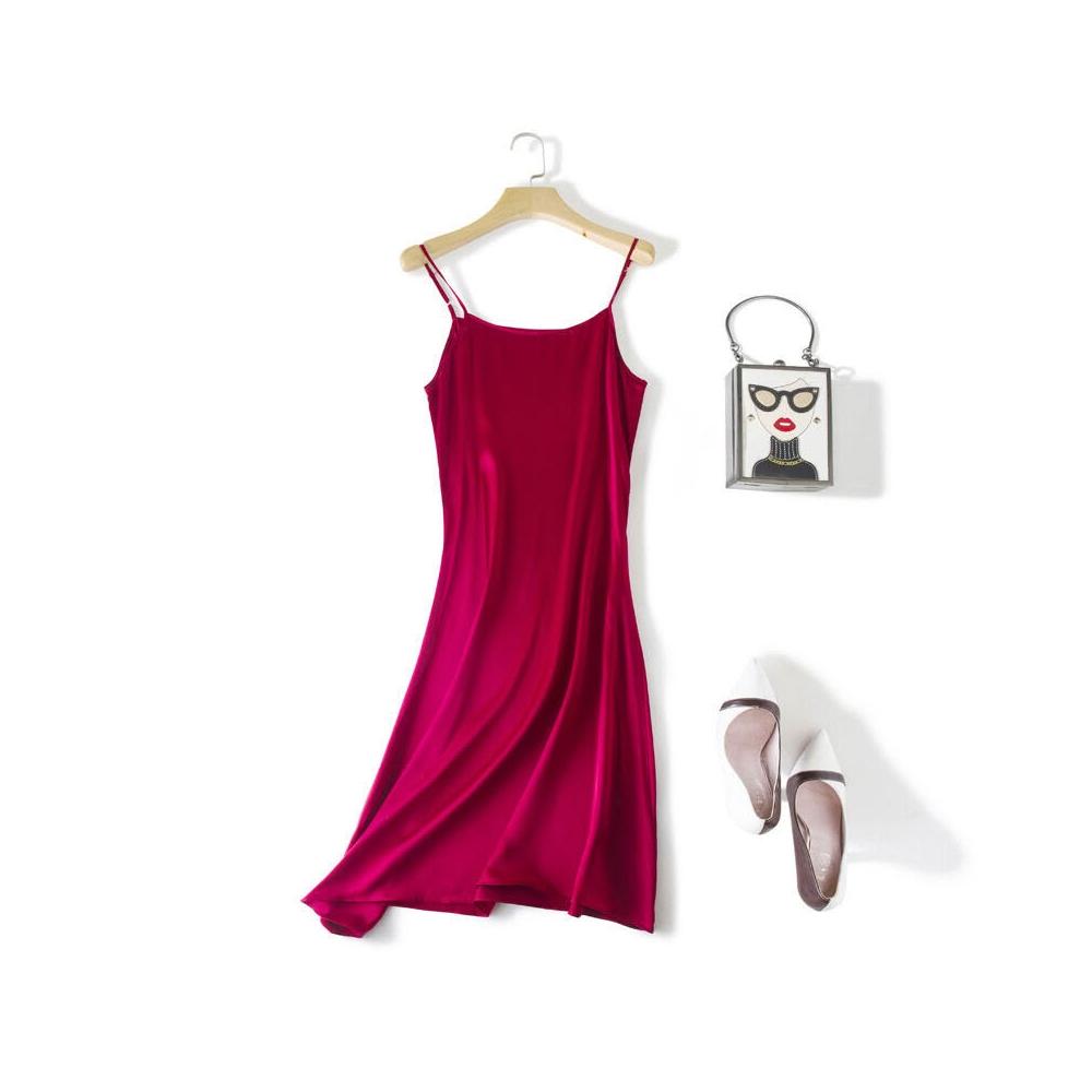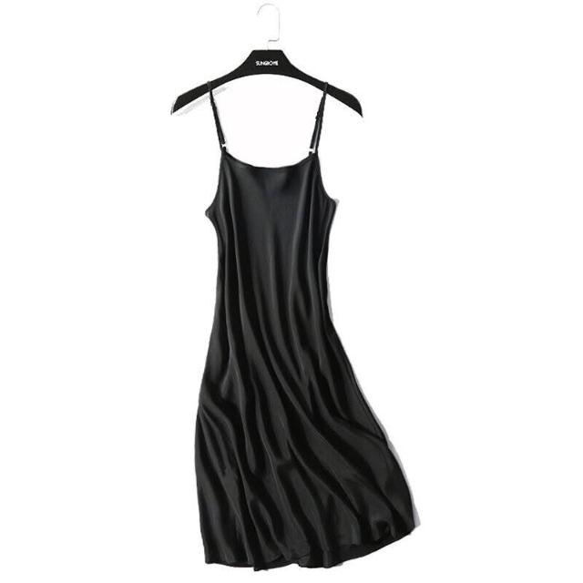 Seven七- 專櫃款真絲吊帶裙純桑蠶絲睡裙簡約精致襯裙中長款女士連衣裙純色
