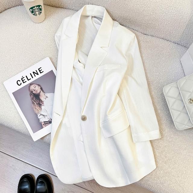 Seven七 夏季 輕薄 白 色西裝 外套 女2026 夏季 新款 高級感 通勤 休閑 氣質西服上衣