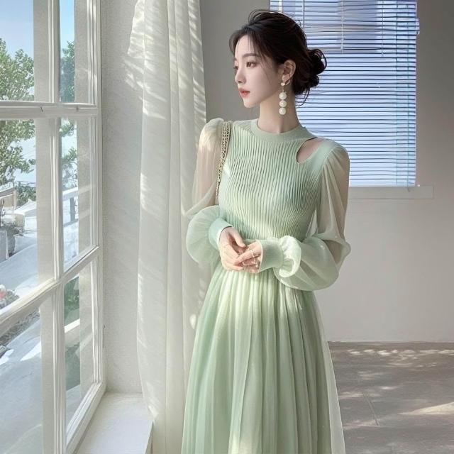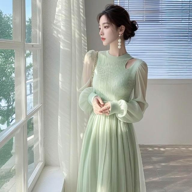 Seven七- 2026 春裝 新 款 法式 輕奢 高級 感 重要 場合 氣質 獨特 漂亮綠色 網紗連衣裙