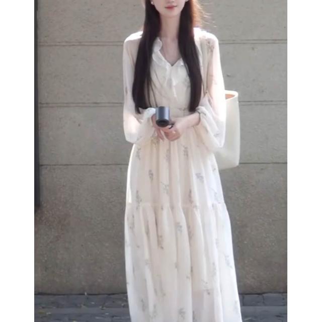 Seven七- 法式 復古 氣質 仙女 度假風 連 衣裙 2026 春夏 新款 收腰 桔梗 茶 歇 長裙女裝