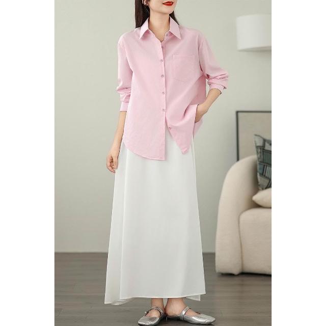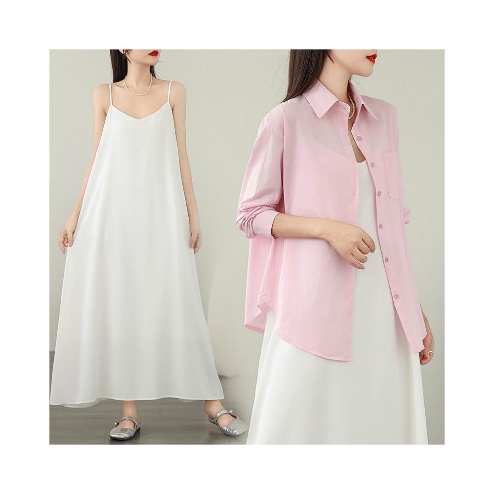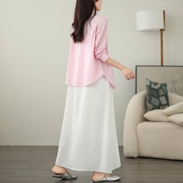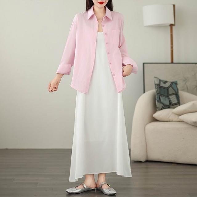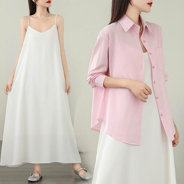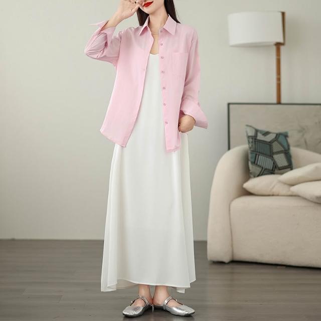 Seven七- .夏裝大碼女裝粉色系防曬襯衫中長款連衣裙兩件套裝M-4XL200斤