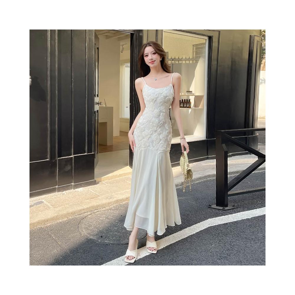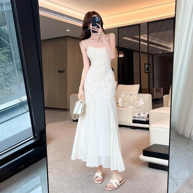 Seven七- 織花臺 法式刺繡立體玫瑰吊帶裙輕奢氣質收腰禮服魚尾裙