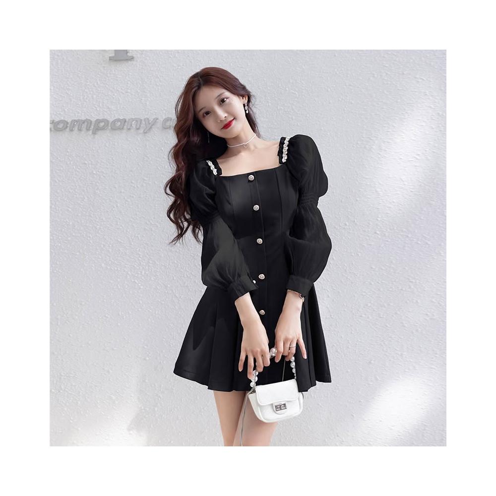 Seven七- .2026新款收腰顯瘦氣質名媛小香風洋氣方領法式連衣裙