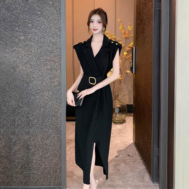 Seven七- . 霸氣禦姐輕熟風氣質顯瘦連衣裙 V領氣場全開小黑裙