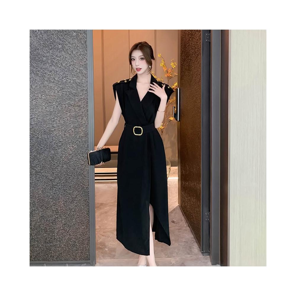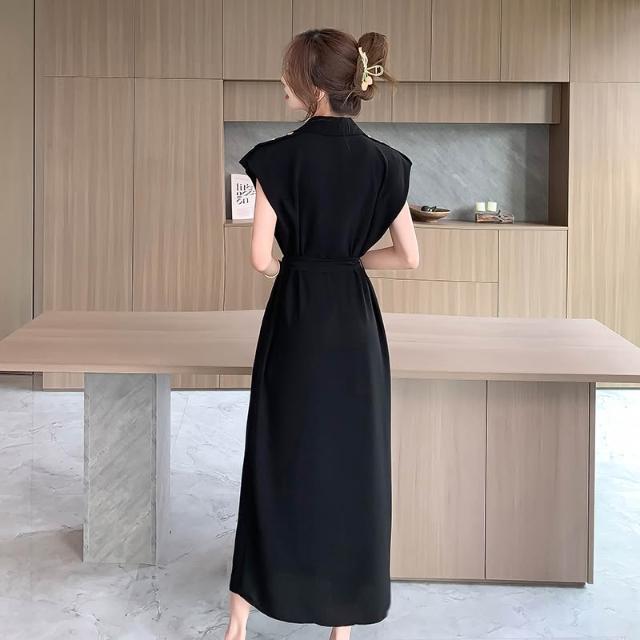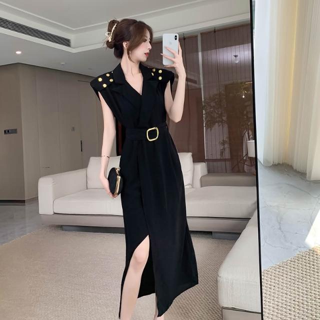 Seven七- . 霸氣禦姐輕熟風氣質顯瘦連衣裙 V領氣場全開小黑裙