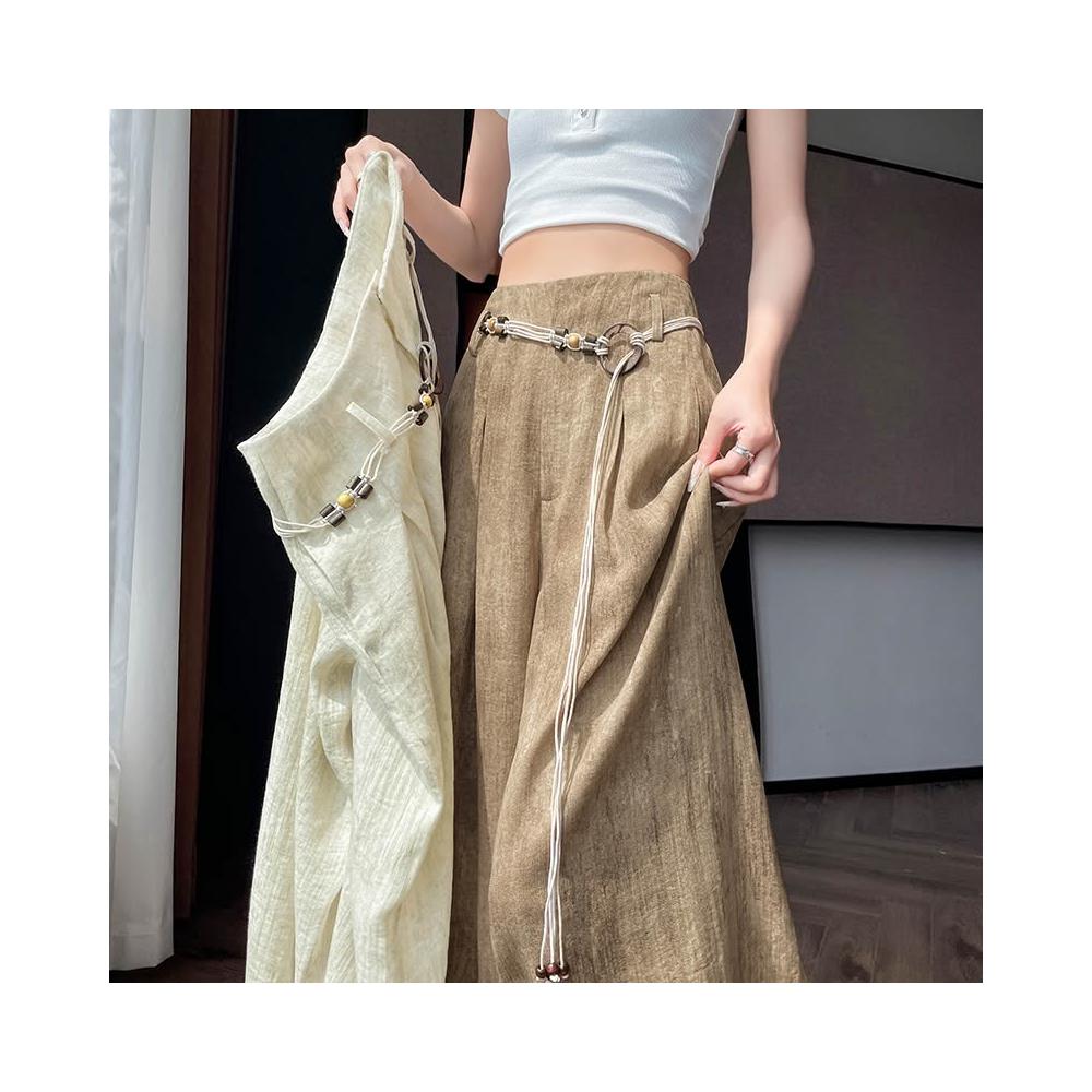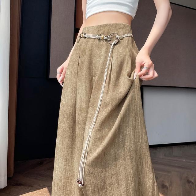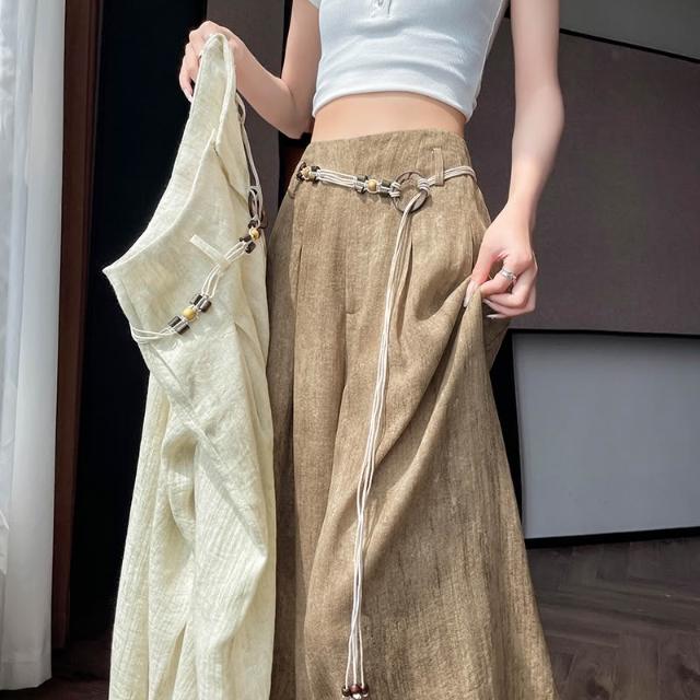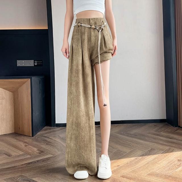 Seven七- .2026夏季新款紮染天絲亞麻闊腿褲高腰寬松棉麻拖地褲女