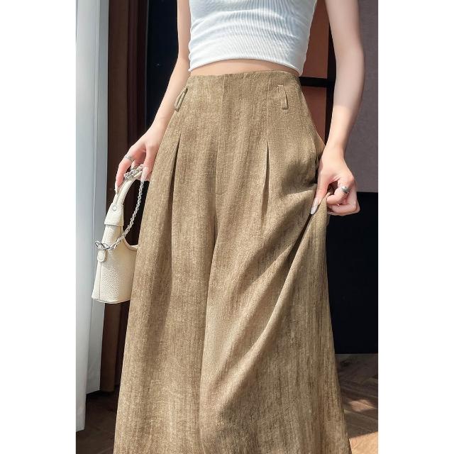 Seven七- .2026夏季新款紮染天絲亞麻闊腿褲高腰寬松棉麻拖地褲女