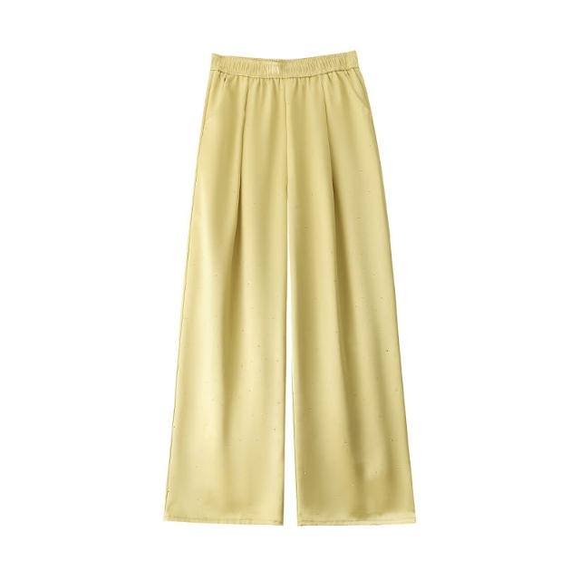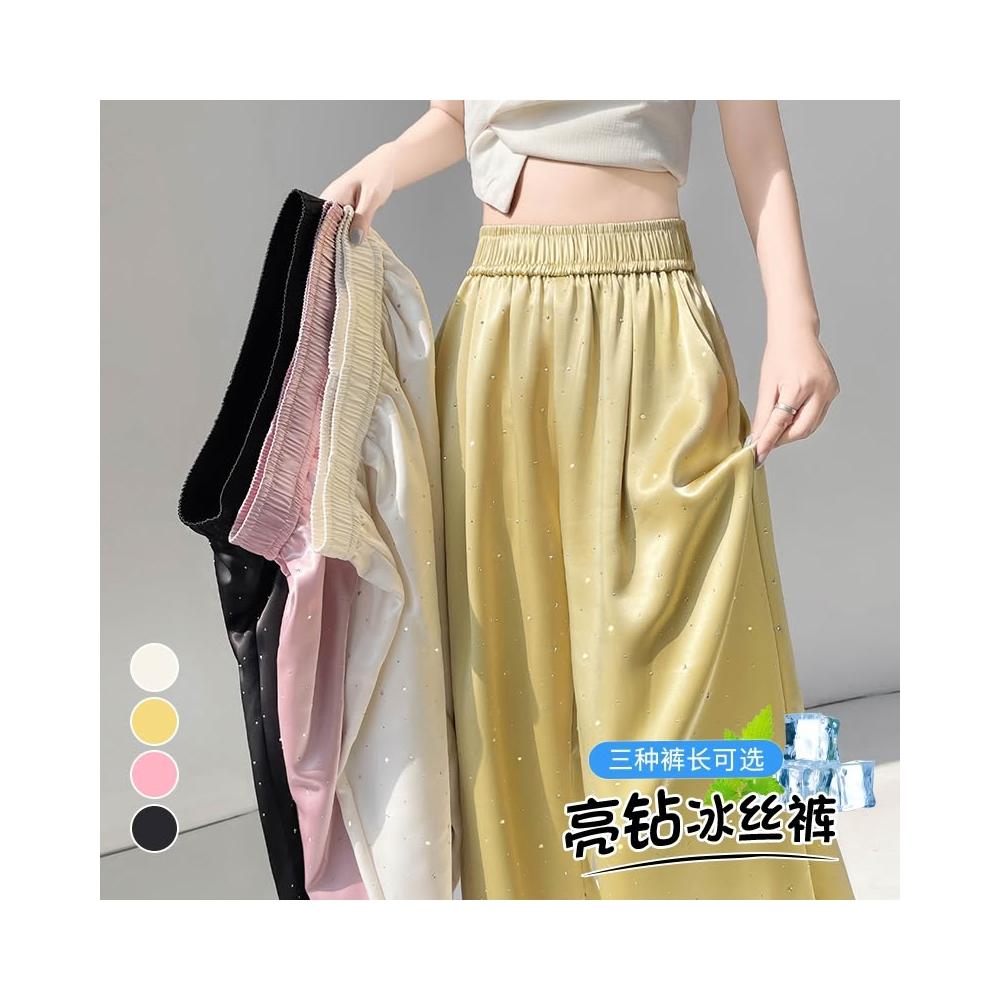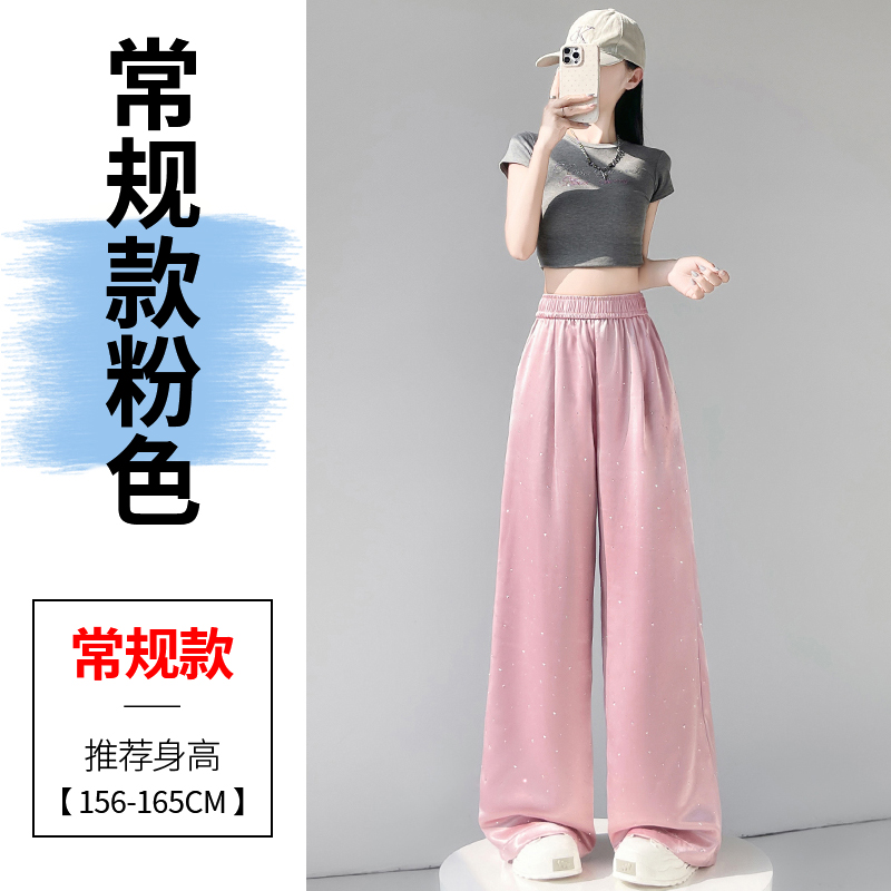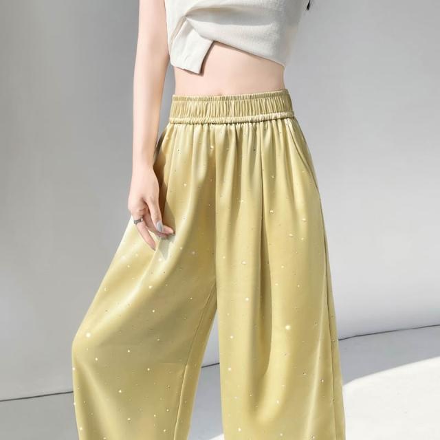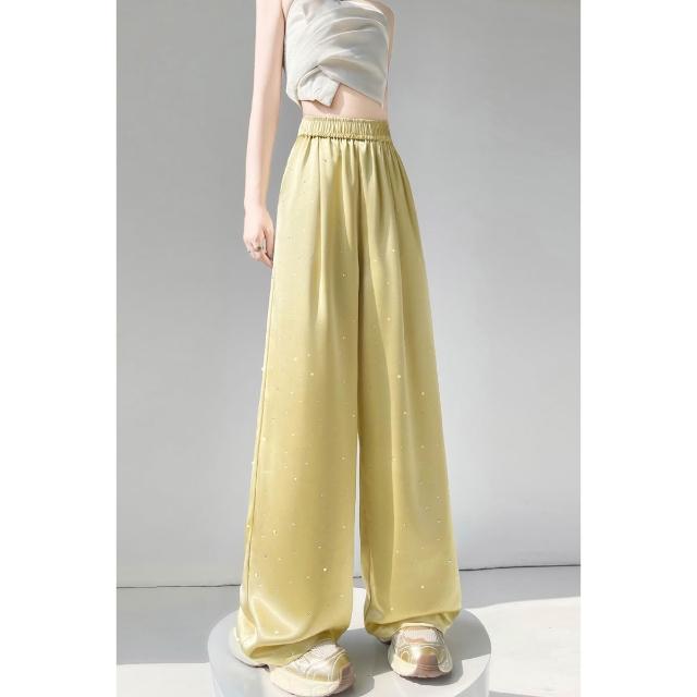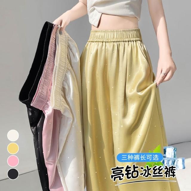 Seven七- .2026夏季新款亮鉆冰絲褲醋酸緞面高腰直筒燙鉆防曬闊腿褲女