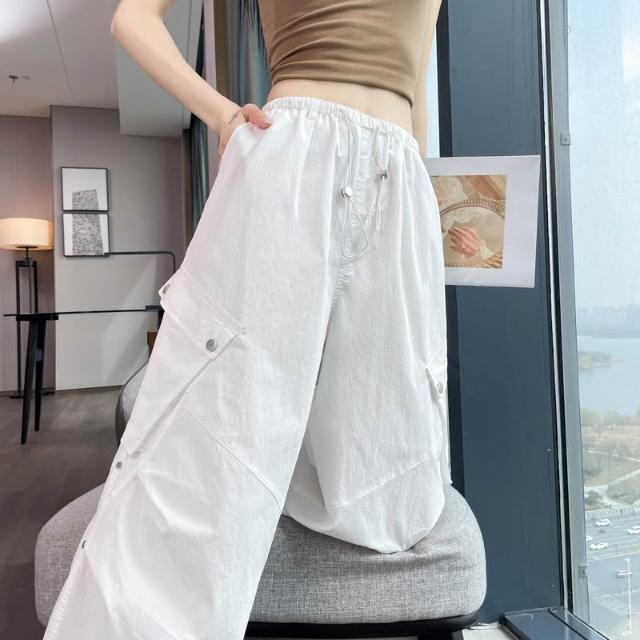 Seven七- .2026夏季新款速幹褲工裝褲女薄款高腰束腳闊腿兩穿哈倫運動褲