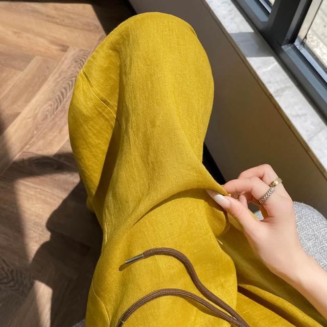 Seven七- .2026夏季新款天絲亞麻闊腿褲高腰棉麻薄款休閑拖地褲女
