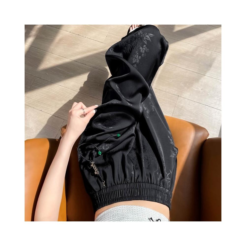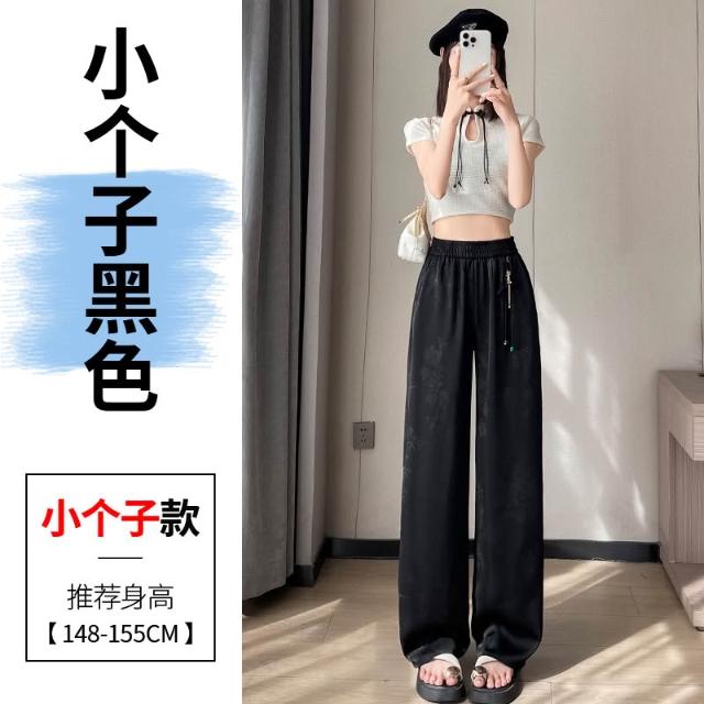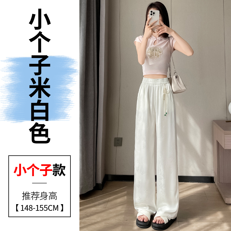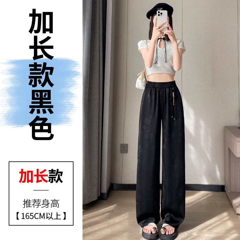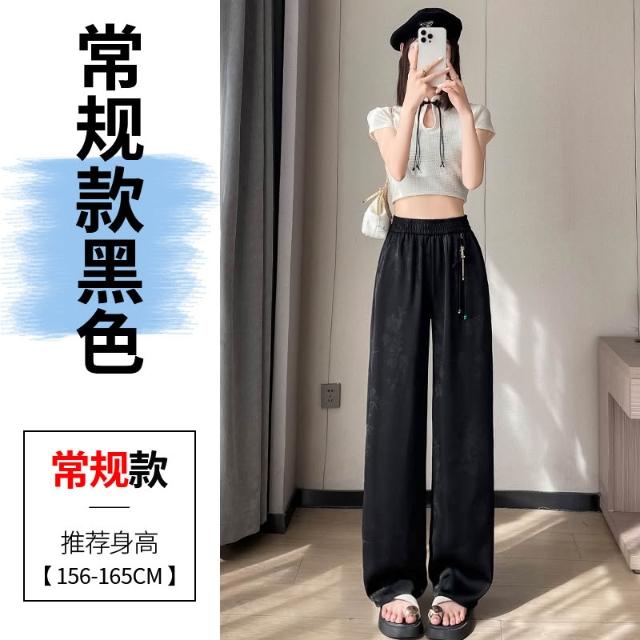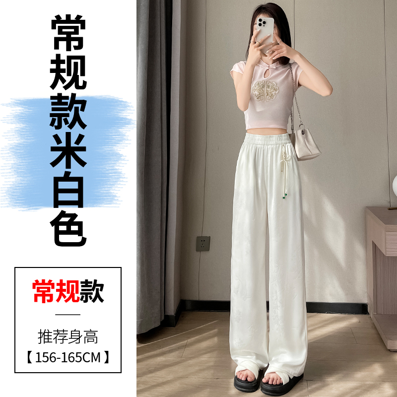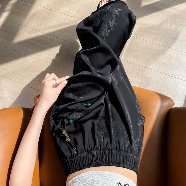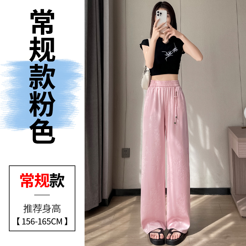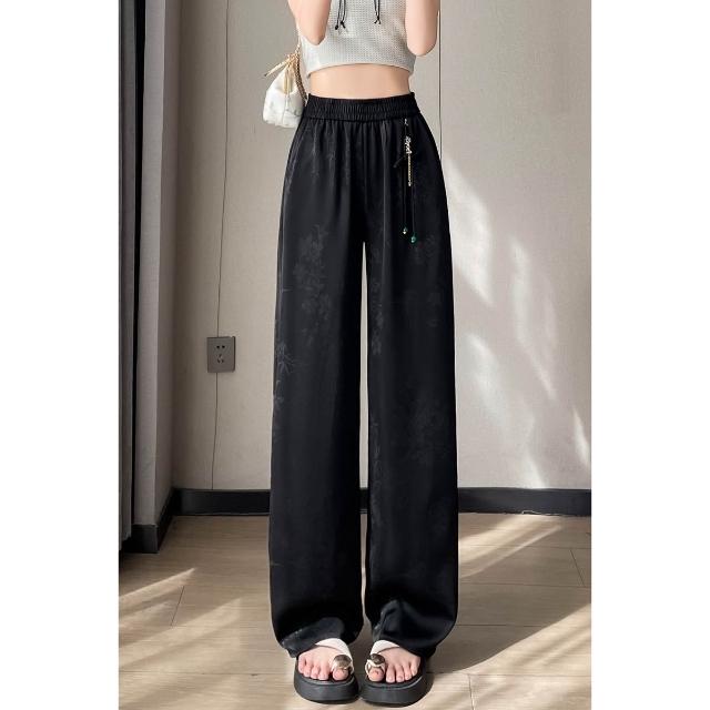Seven七- .2026夏季新款新中式提花緞面冰絲褲國風防曬闊腿褲休閑褲女