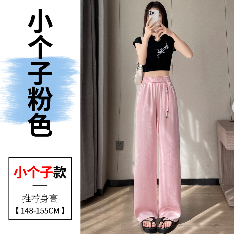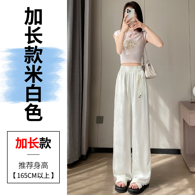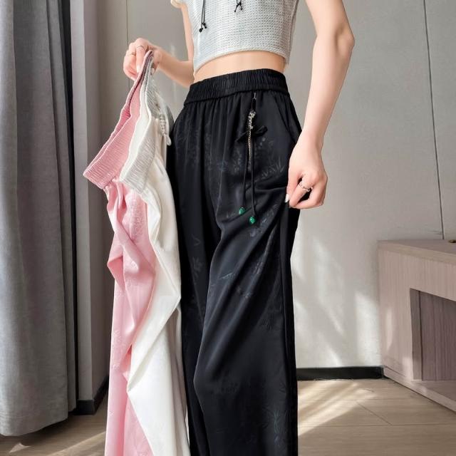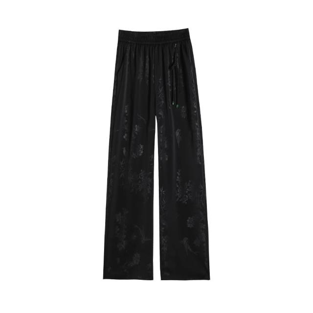 Seven七- .2026夏季新款新中式提花緞面冰絲褲國風防曬闊腿褲休閑褲女