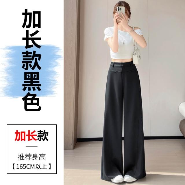 Seven七- .2026夏季新款冰絲西裝褲高腰窄版闊腿褲直筒薄款休閑拖地褲女