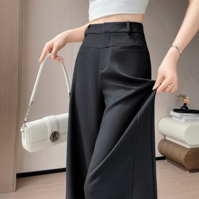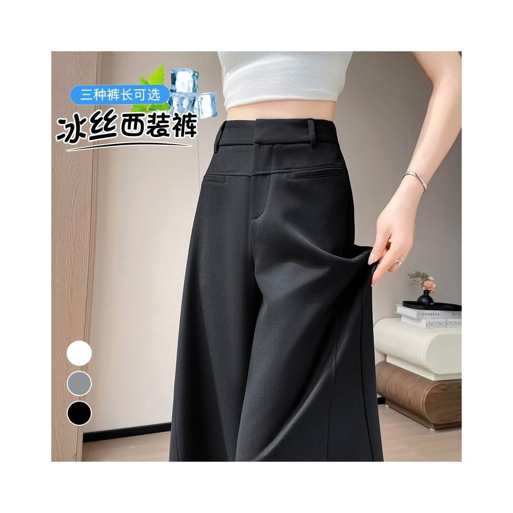 Seven七- .2026夏季新款冰絲西裝褲高腰窄版闊腿褲直筒薄款休閑拖地褲女