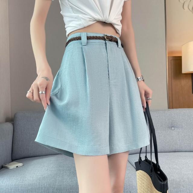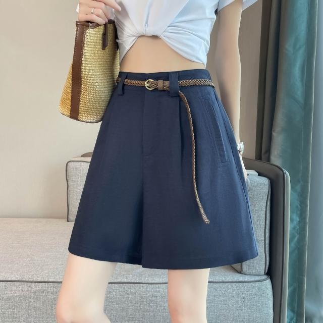 Seven七- .2026夏季新款天絲亞麻五分褲A字闊腿高腰棉麻薄款短褲女