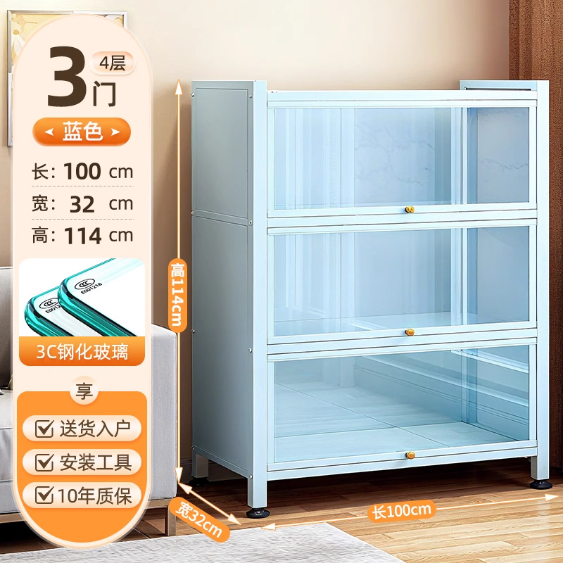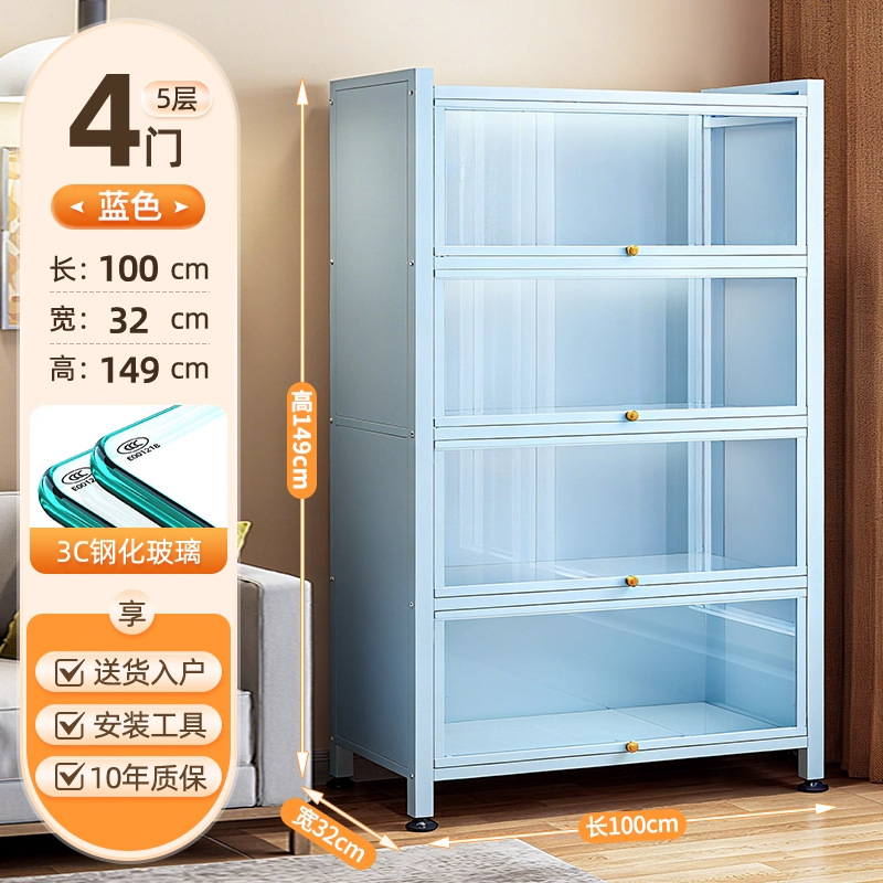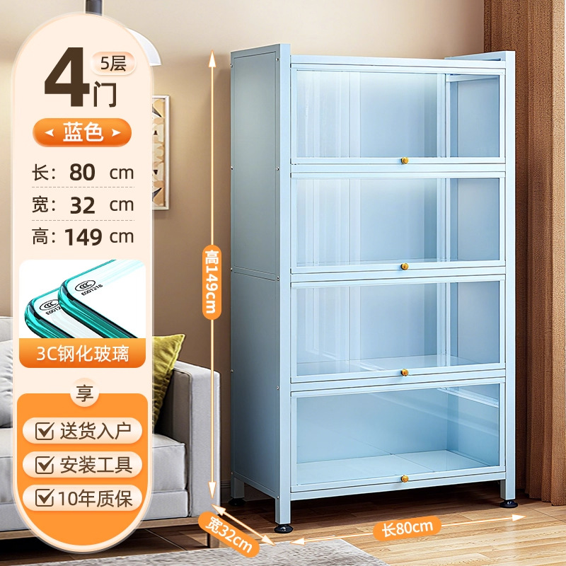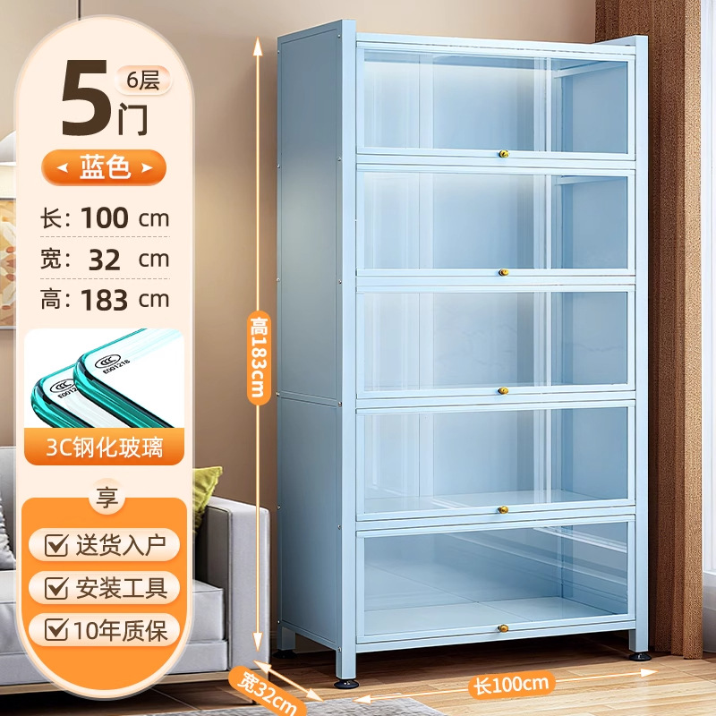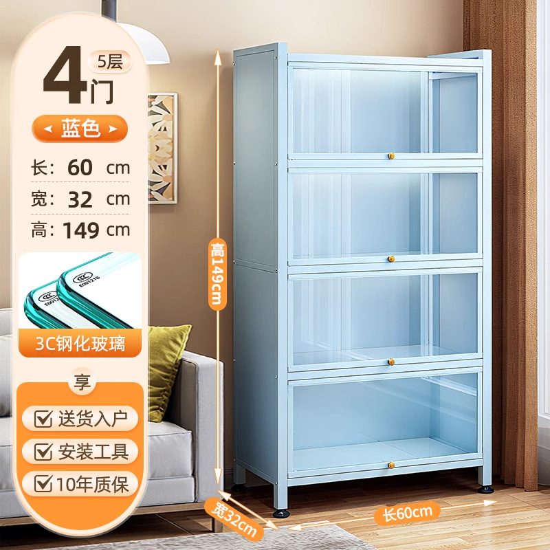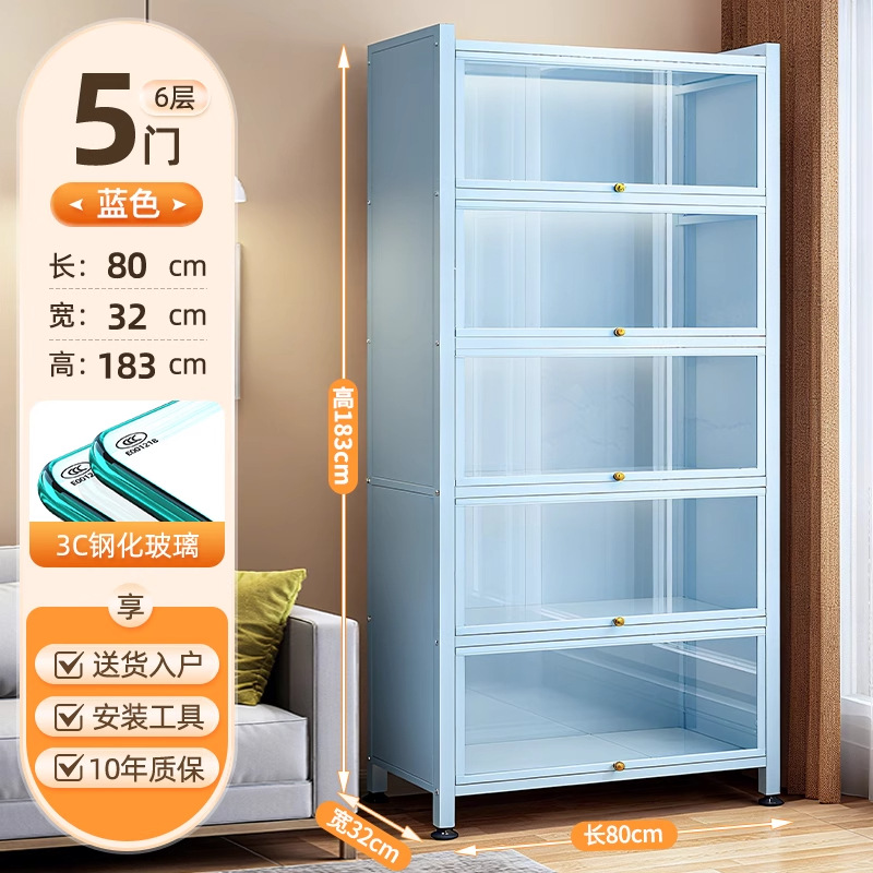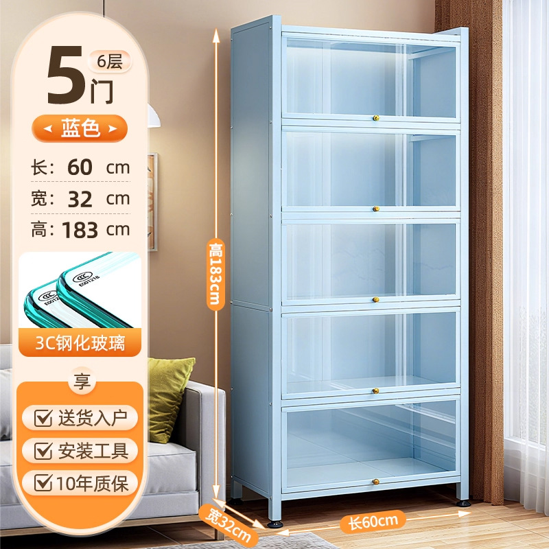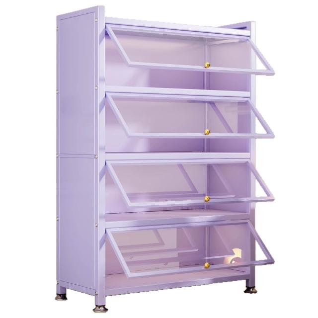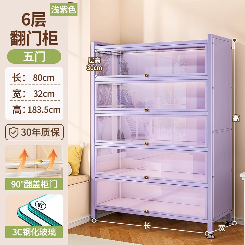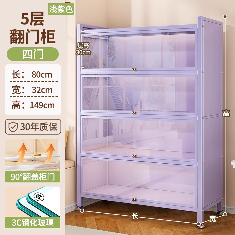 Seven七- 紫色 鋼製 書 架 帶玻璃門 落地 書櫃 防塵 手辦 展示櫃 痛櫃鐵皮 收納 儲物櫃