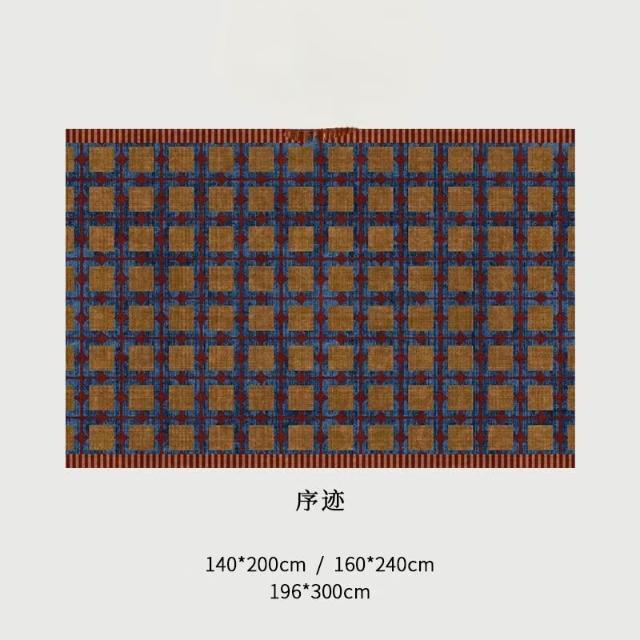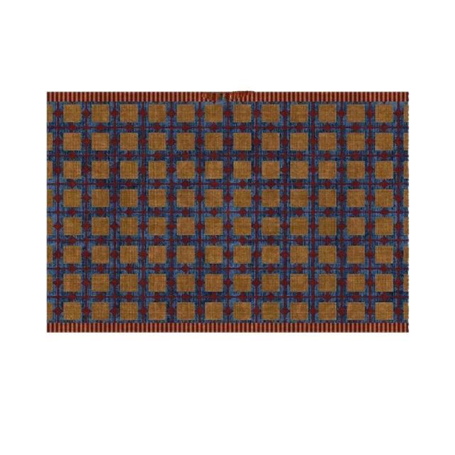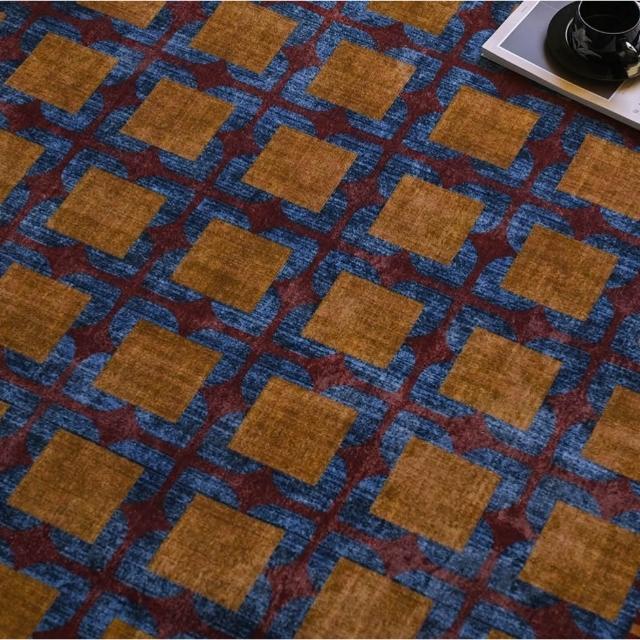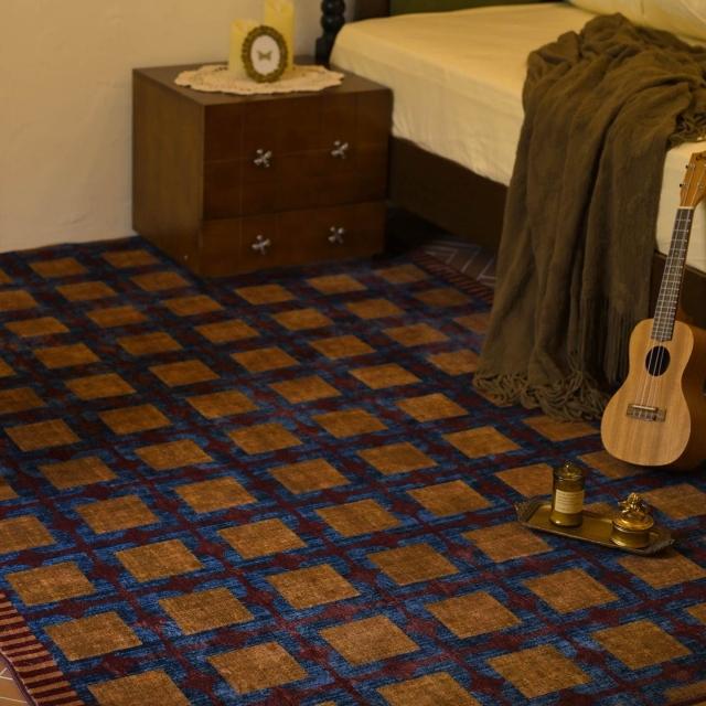 Seven七- 復古 紅藍 撞色 格紋 地毯 法式 中古風 大尺寸 客廳 臥室 滿鋪 地毯