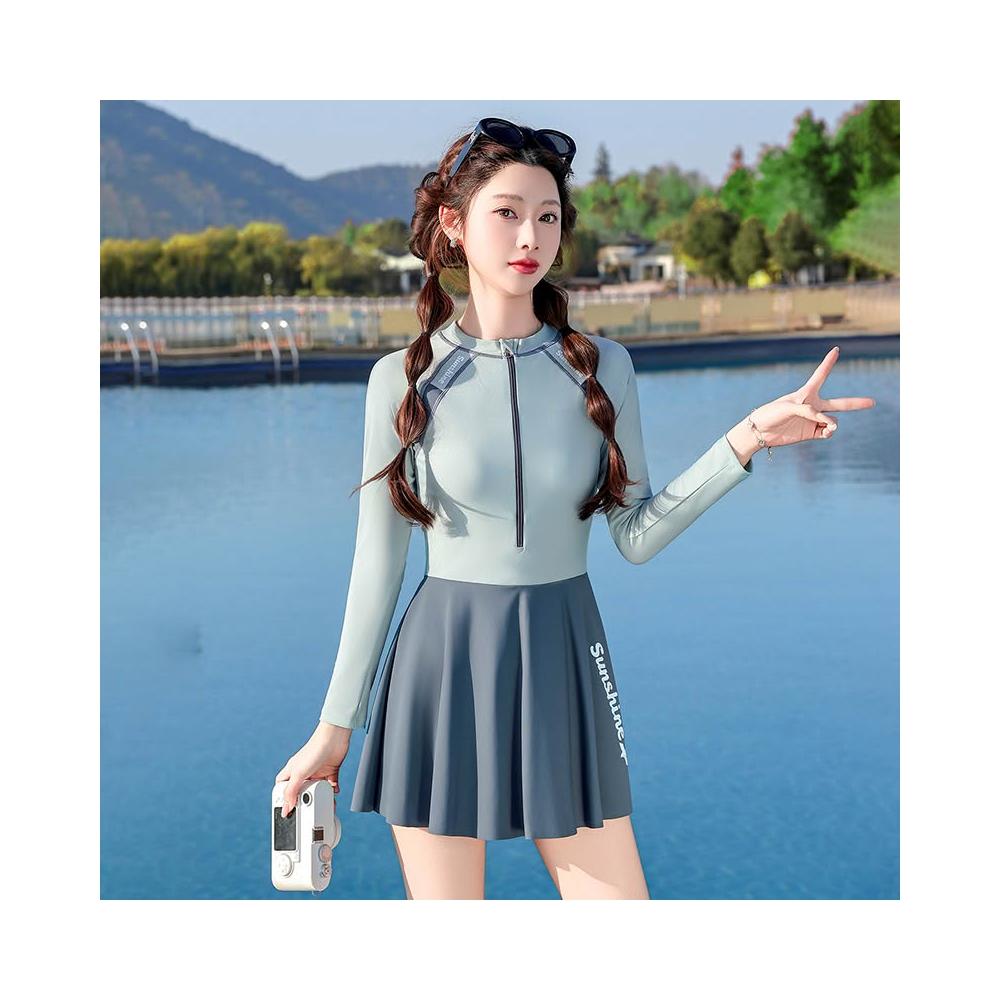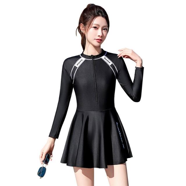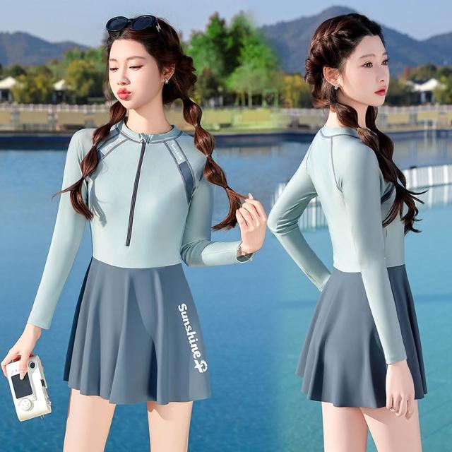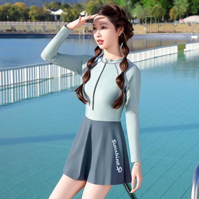 Seven七- 泳衣2026新品顯瘦遮肚連體長袖裙式平角專業女士遊泳衣泡溫泉泳裝