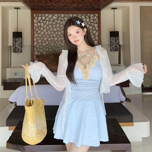 Seven七- 2026新款多巴胺夏泳衣女連體裙式罩衫長袖防曬度假溫泉大碼微胖mm