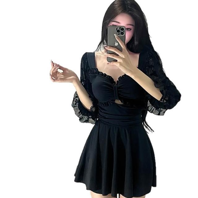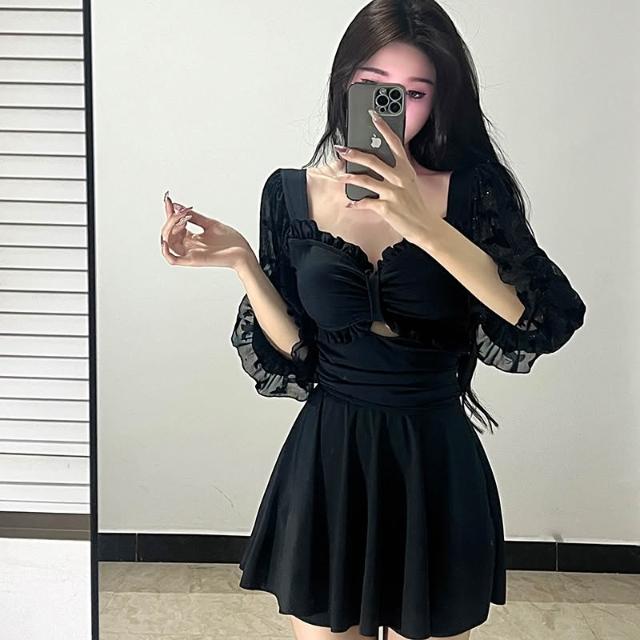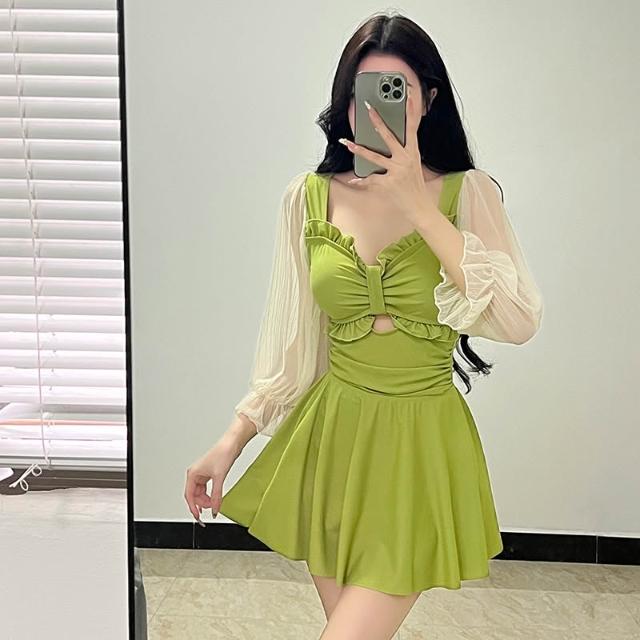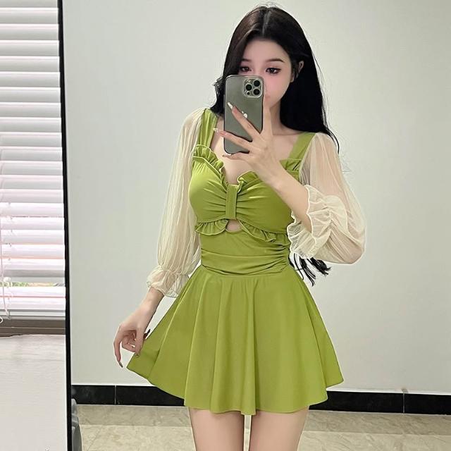 Seven七- 2026新款連體泳衣女裙式大碼保守顯瘦遮肉超仙海邊度假泡溫泉泳裝